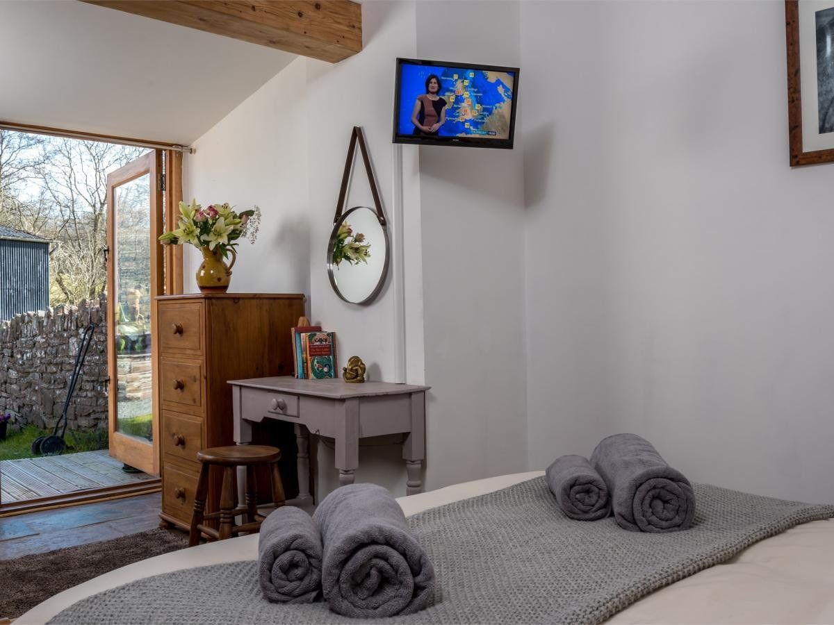 Exposed stonework and wooden beams provide a real rustic feel to this lovely barn conversion, set among rolling hills and the idyllic scenery on the fringes of the Brecon Beacons National Park.