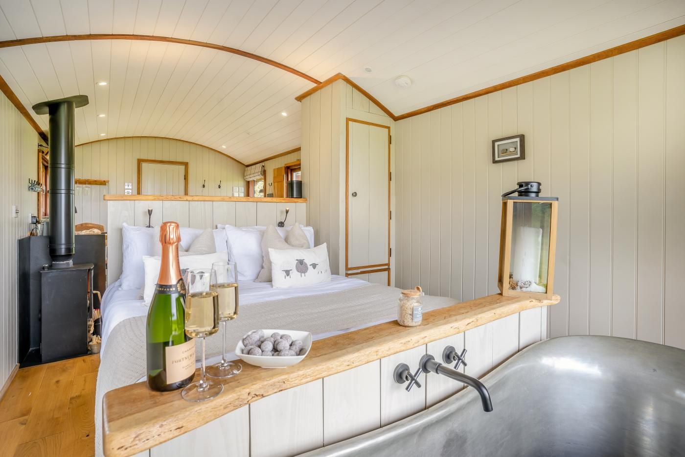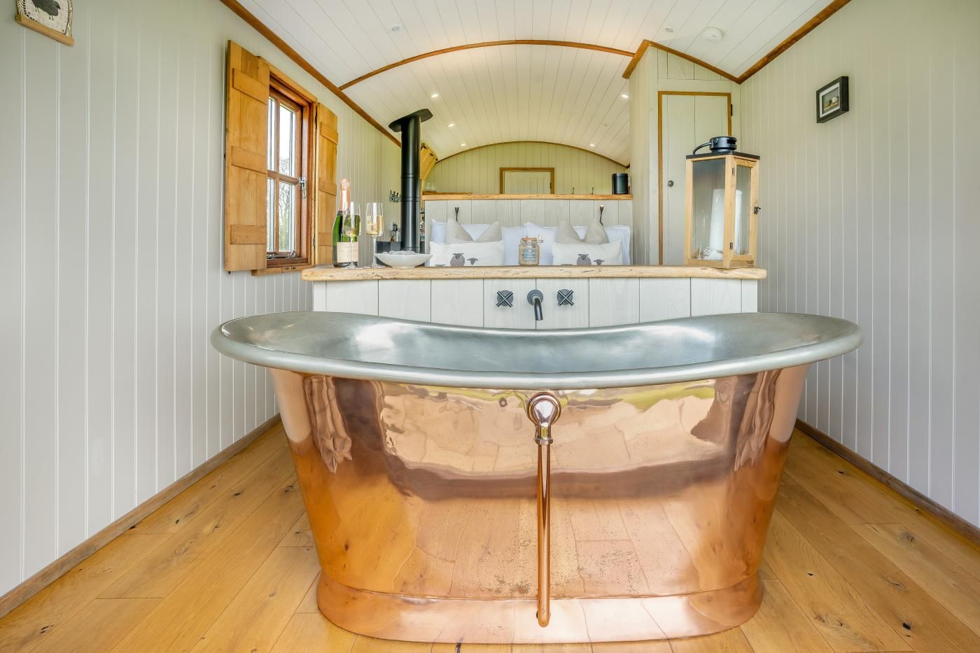 Sleeping just two guests, the exquisite retreat is set in glorious surroundings within the foothills of the Black Mountains and close to Bannau Brycheiniog, also known as the Brecon Beacons. On a site with two other exclusive retreats, 8 miles from Brecon, it offers the luxurious touches of a free-standing twin copper bath and a wood burner.