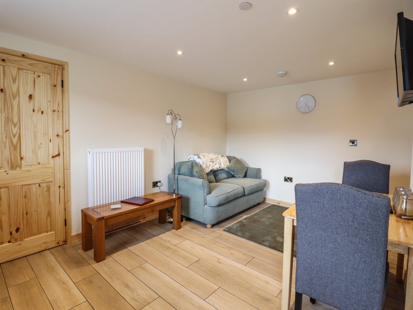 Accomodation Details One double bedroom with en-suite walk-in shower, basin, heated towel rail and WC. Open-plan living space with kitchen, dining area and sitting area