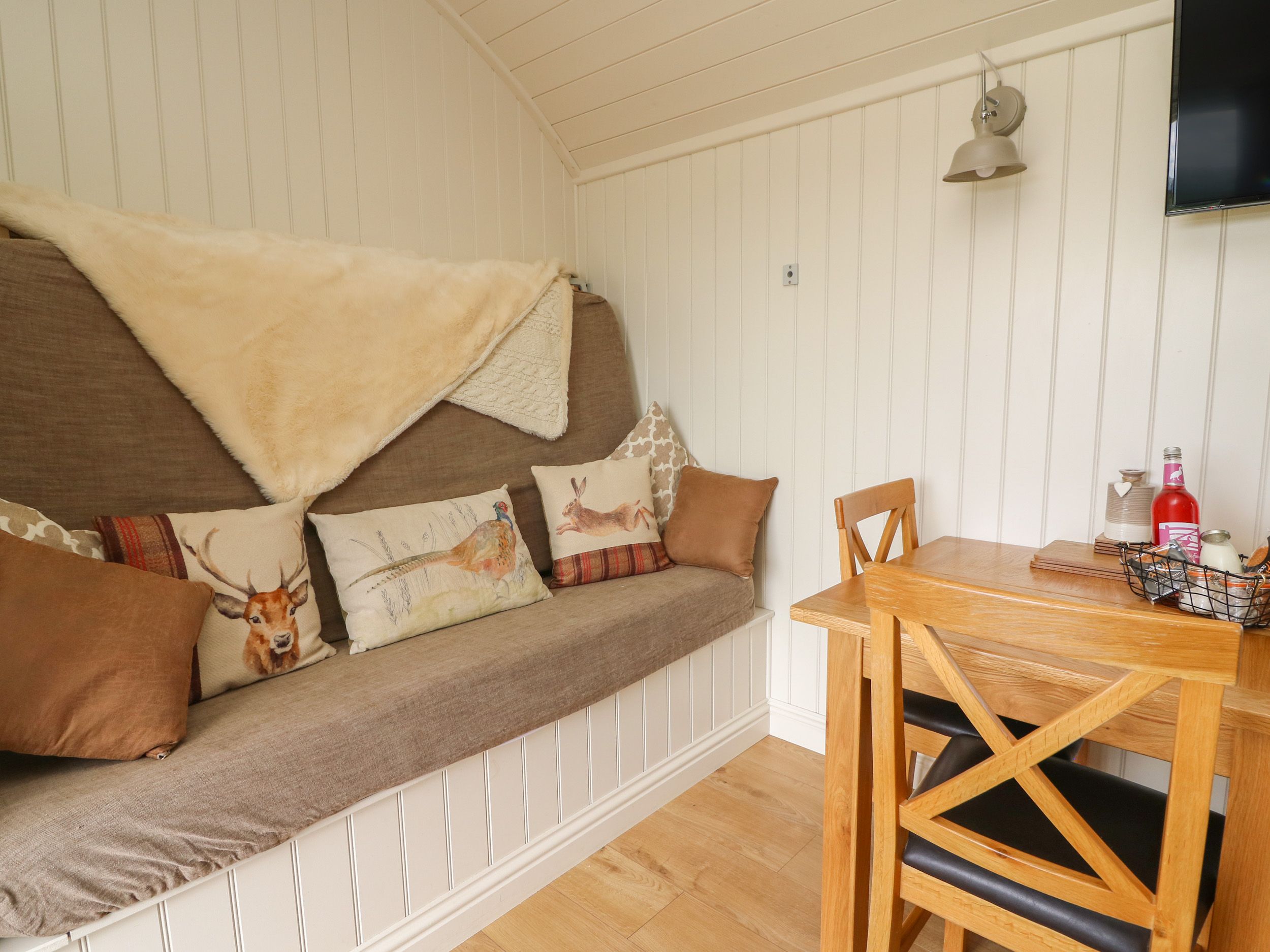 Amenities Electric heating. Electric oven and 2 ring hob,fridge with ice compartment, TV with Freeview, WiFi. Fuel and power inc. in rent. Bed linen and towels inc. in rent. Off-road parking for 2 cars. Enclosed lawn and patio with hot tub. Two well-behaved dog welcome. Sorry, no smoking. Shop 1.8 miles, pub 1.7 miles. Note: Four steps up to property. Note: Bunk bed, turns into main sofa area in sitting room. Note: Hot tub is cleaned on changeover and can take up to 12 hours to be back to optimal temperature. Note: Check in is 4pm. Note:This property has a Good Housekeeping Bond of £250. Note: Hillside View can only accept bookings that start on a Friday for 3 nights, or Monday for 4 nights 7 night bookings are also accepted however, must start and end on a Friday or a Monday. Please note that we are unable to accept check-ins on 24th, 25th, and 26th December
