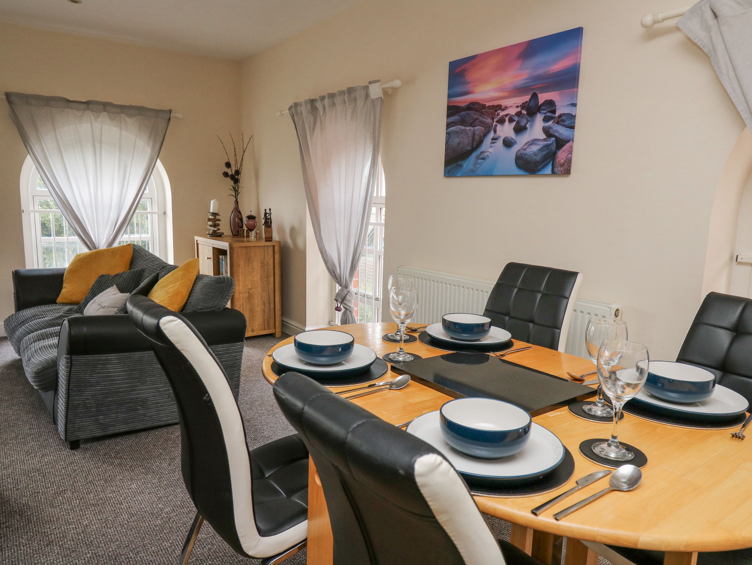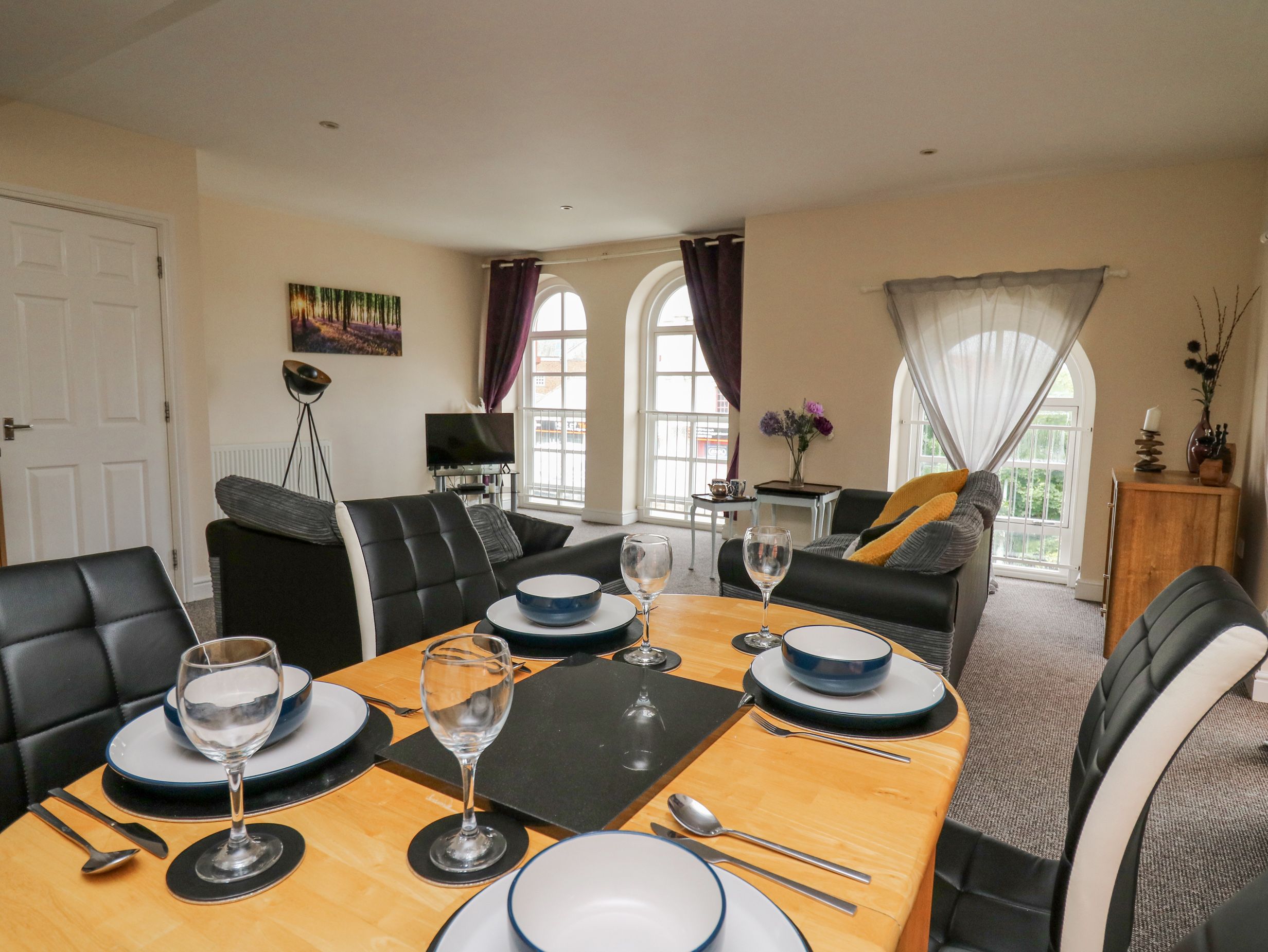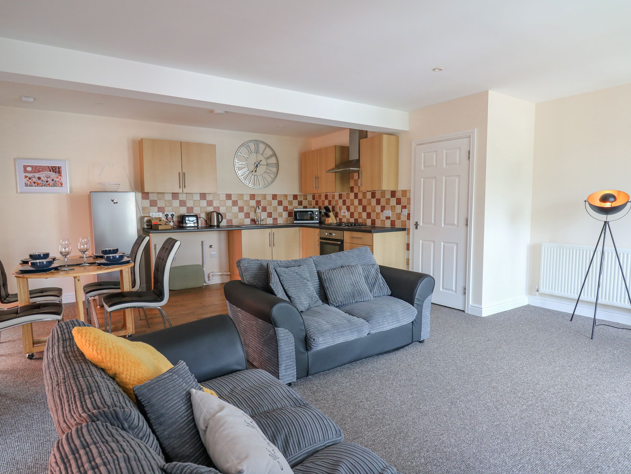Accomodation Details Over the first and second floors. Two second-floor double bedrooms. Bathroom with bath, separate shower, basin, and WC. Open-plan living space with kitchen, dining area, and sitting area