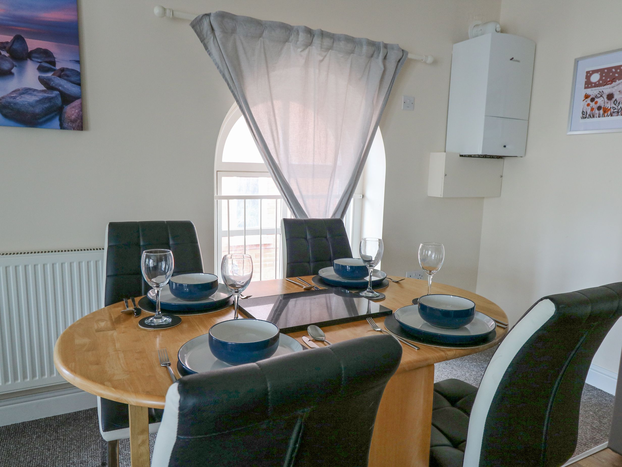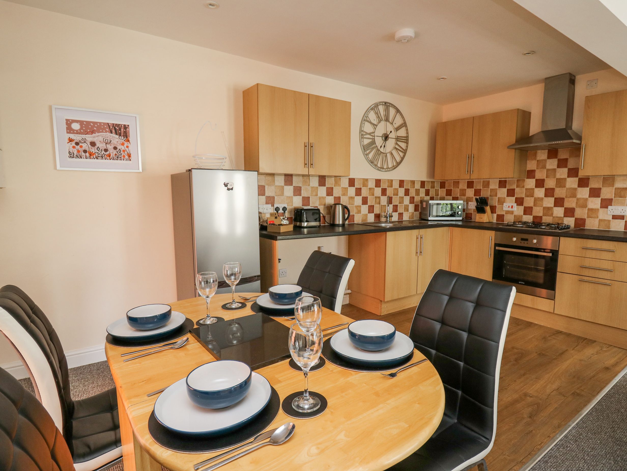 Holiday home Old Quaker House, a duplex apartment, consists of an open-plan living space including a kitchen with an electric oven, gas hob, microwave, fridge/freezer, and washing machine, a dining area with dining table, and a sitting area with TV with Netflix and Amazon Prime (no terrestrial coverage). The bedrooms consist of two second-floor doubles. There is a bathroom with bath, walk-in shower, basin, and WC. Outside, there is roadside parking. Sorry, no pets and no smoking. Shop and pub 0.1 miles, lake 0.6 miles. WiFi, fuel, power, bed linen and towels are all included in the price. All of this awaits at Old Quaker House. Note: No garden at the property. Note: Staircase up to property, please take care