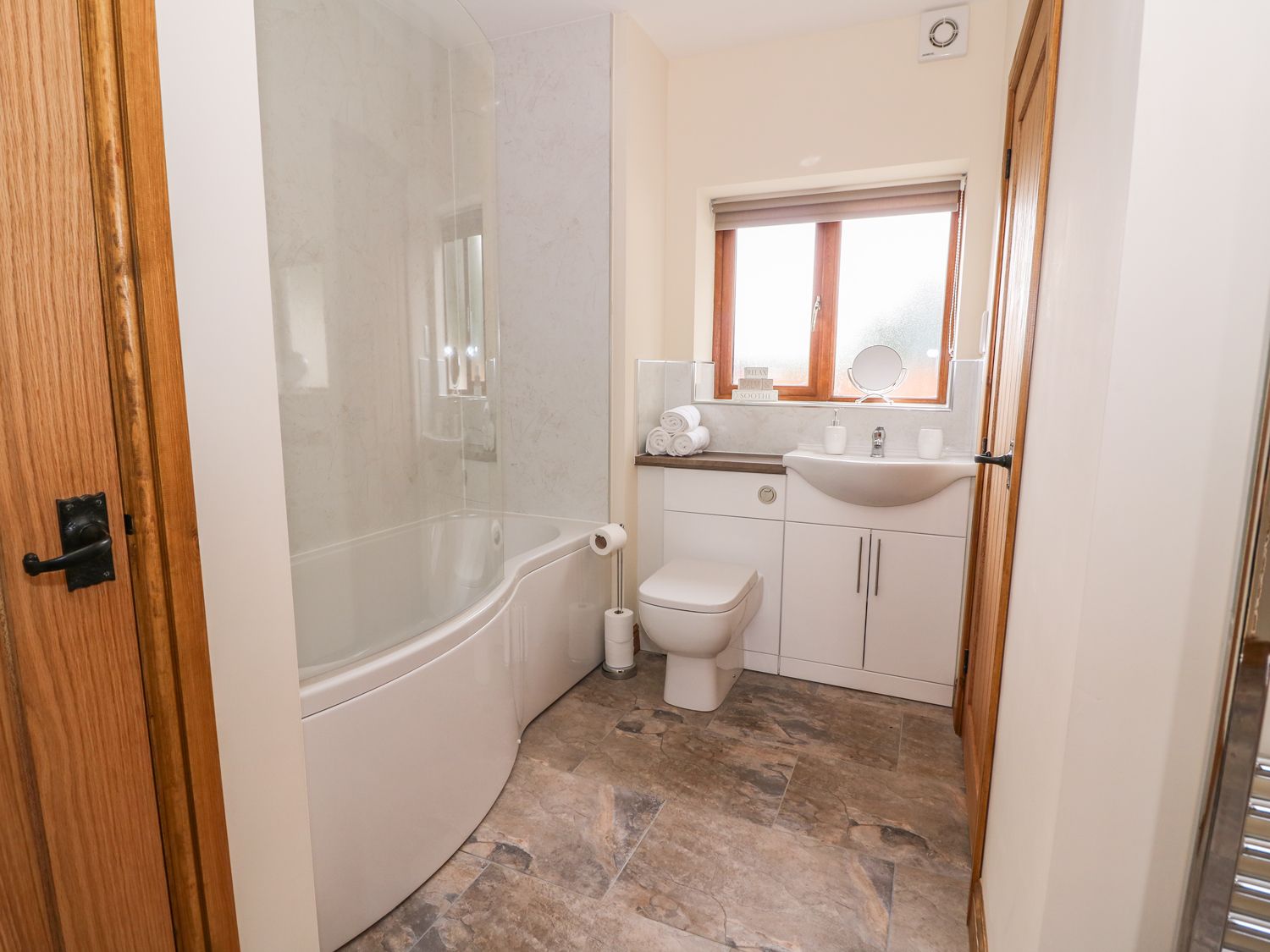 Oil central heating with woodburning stove. Electric oven and hob, fridge/freezer, microwave, washing machine, dishwasher, WiFi, TV with FreeSat. Fuel, power and starter pack for fire/stove inc. in rent. Bed linen and towels inc. in rent. Cot and highchair available. Off-road parking for three cars. Garden with patio furniture and charcoal BBQ and steps down to hot tub. Lockable bike storage on request. Sorry, no pets and no smoking. Shop and pub 6 miles. Note: Sloping ceiling and limited head room in the twin bedrooms. Note: to book the property for a Saturday arrival please call reservations