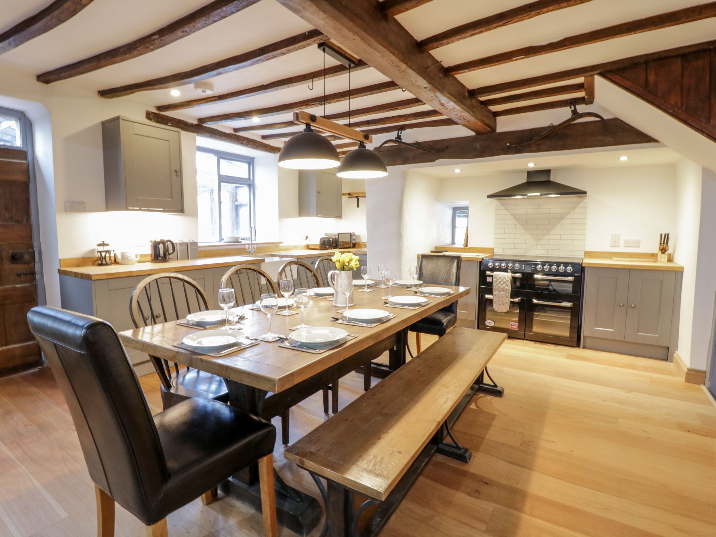 Accomodation Details Split-level-accommodation. Five bedrooms: 1 x king-size, 1 x double with en-suite bathroom with bath, basin and WC, 2 x double, 1 x twin. 2 x ground floor shower room with shower, basin and WC. First-floor shower room with shower, basin and WC. Open-plan living space with kitchen, dining area and sitting area with woodburning stove. Sitting room with woodburning stove. Snug. Games room. Utility room