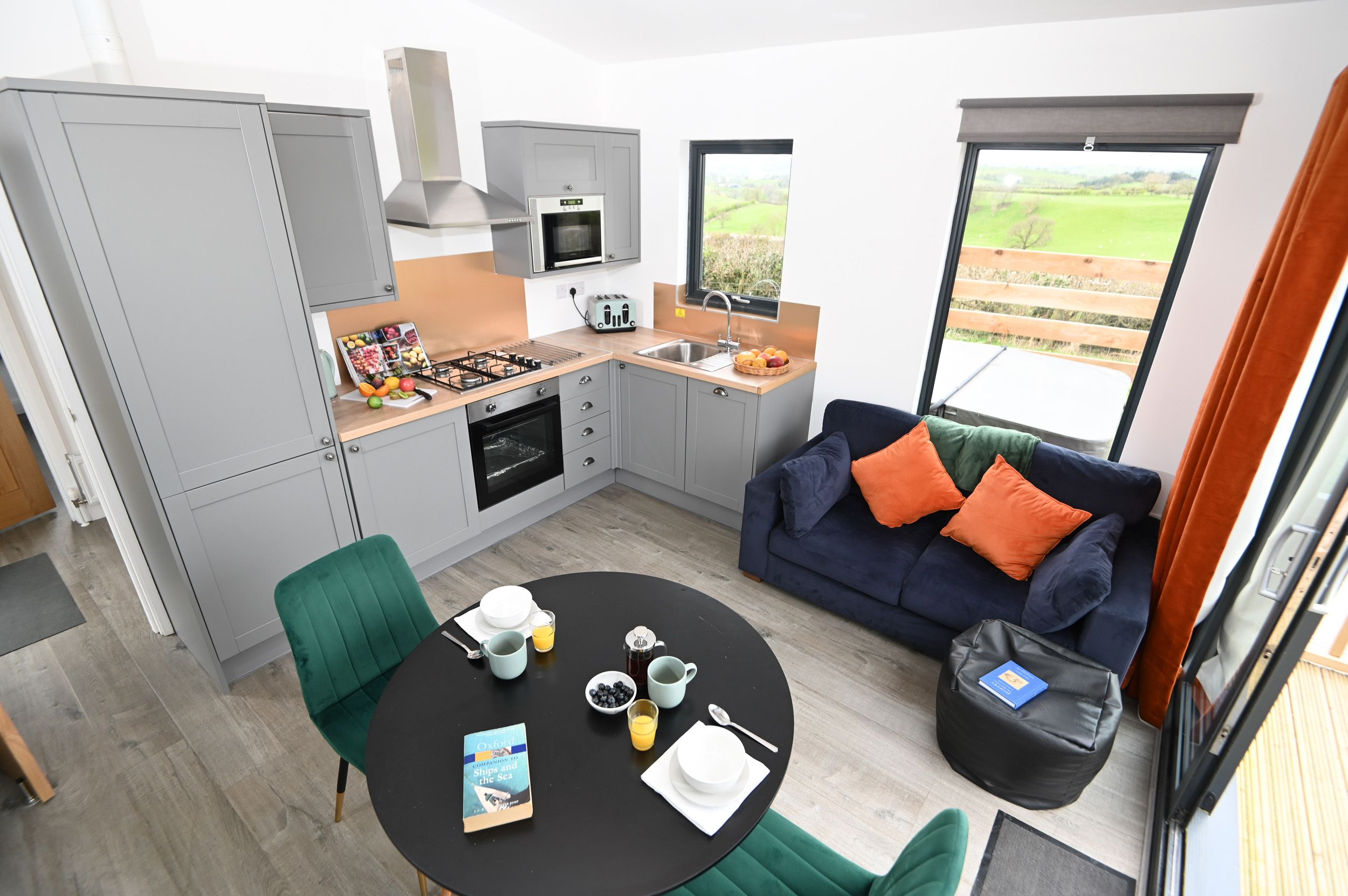 Holiday home Cae Bedw, a romantic, hand crafted abode consists of an open-plan living space including a kitchen with an electric oven, gas hob, microwave, fridge with freezer compartment, slimline dishwasher, hairdryer, a dining area, and a sitting area with Smart TV. The bedroom consists of a king-size bed with blackout curtains, along with a bathroom. Highchair and travel cot available. Outside, there is a non-enclosed rear garden with private balcony, lawn, gravel, decking, hot tub, and off-road parking for one car. One well-behaved pet welcome, supplement GBP25 per pet per holiday. Please note that this is a smoke-free property. Shop 2.8 miles, pub 1.1 miles. WiFi, fuel, power, bed linen, and towels are all included in the price. Escape to Cae Bedw with your loved one. Note: There are a few steps up to the property, please take care. There are a couple of steps down to garden. Please note: This property is on a working farm. This property can't accommodate change over on 08/08/24 or 28/09/24