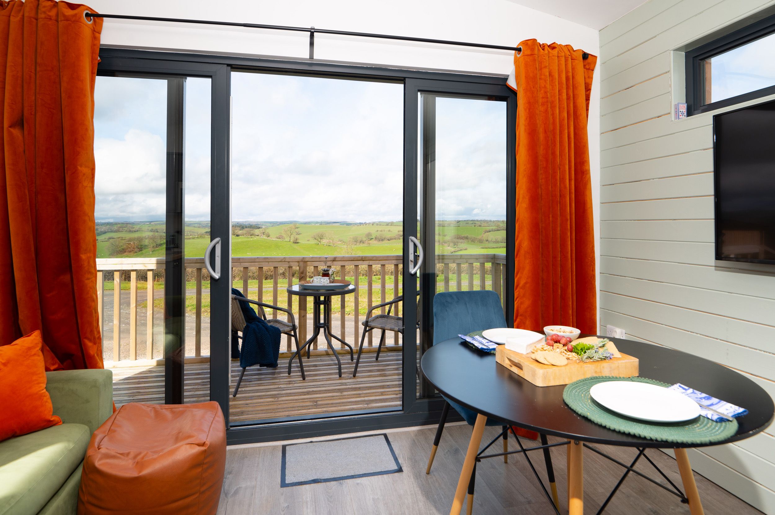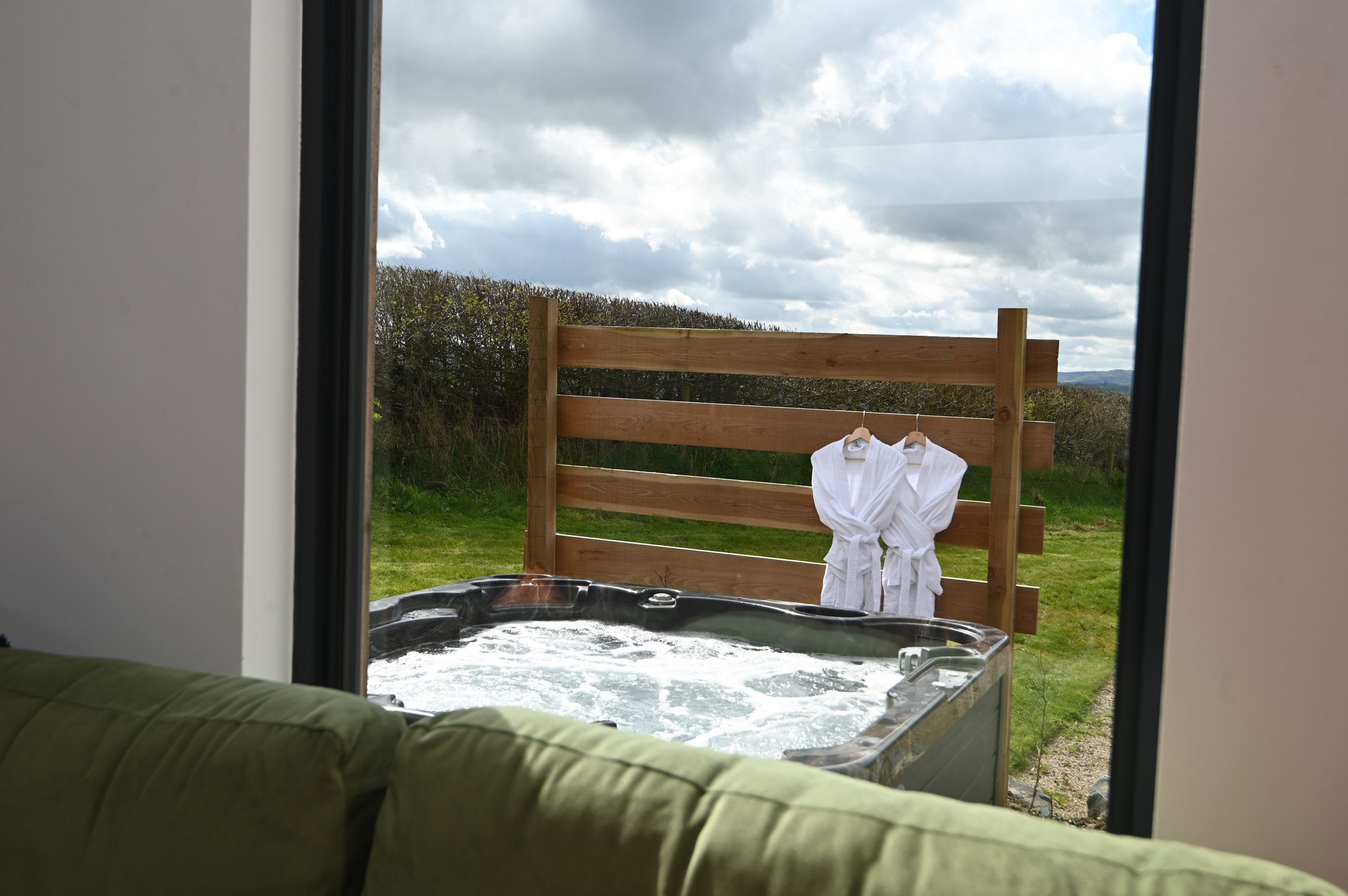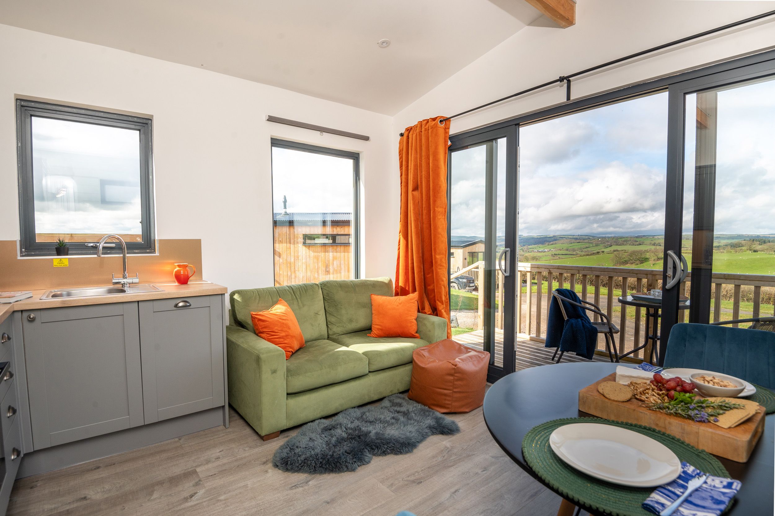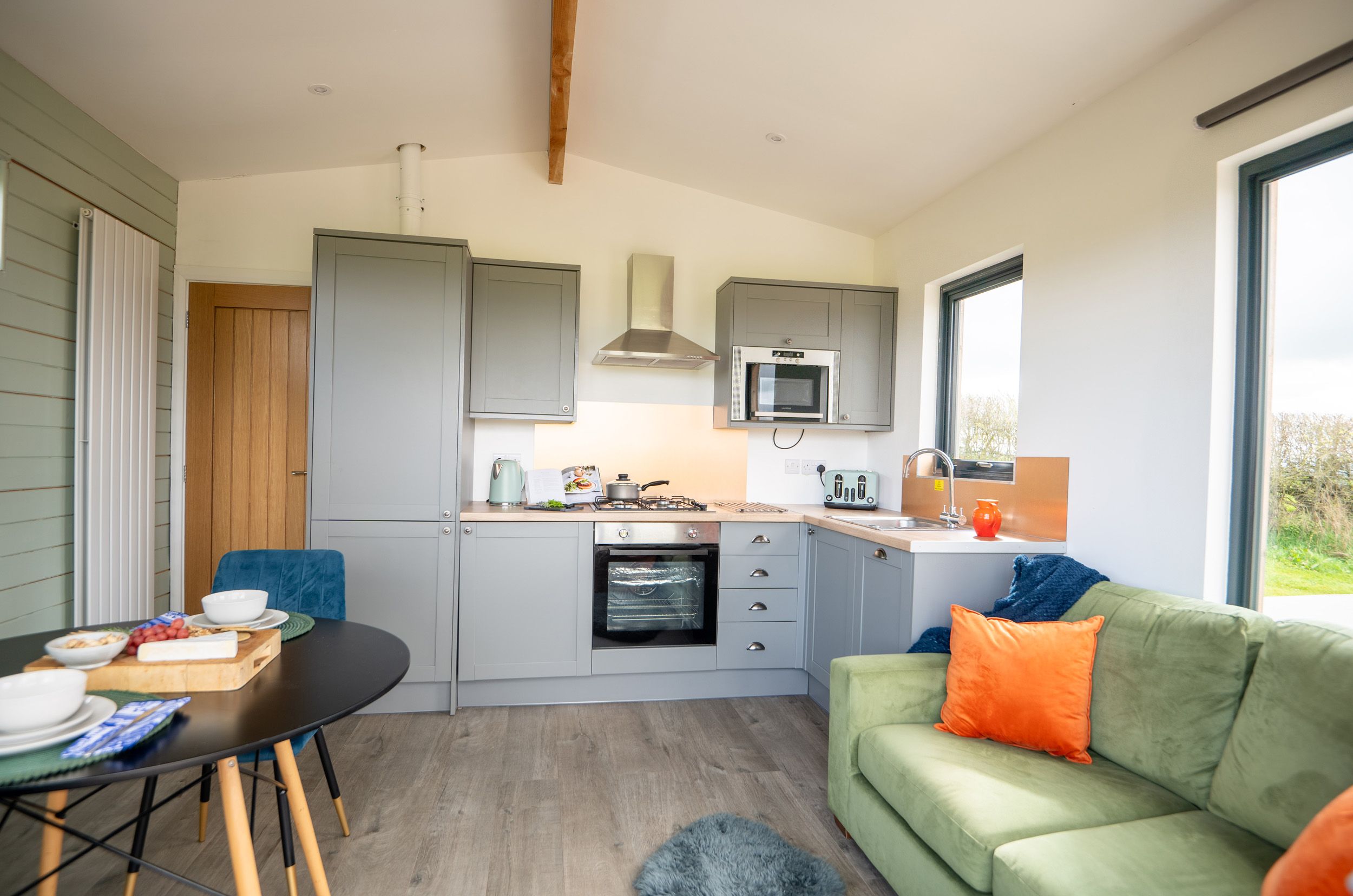 Accomodation Details Single-storey, hand crafted lodge. One king-size bedroom with blackout curtains. Bathroom with bath, shower over, basin, heated towel rail, and WC. Open-plan living space with kitchen, dining area, and sitting area