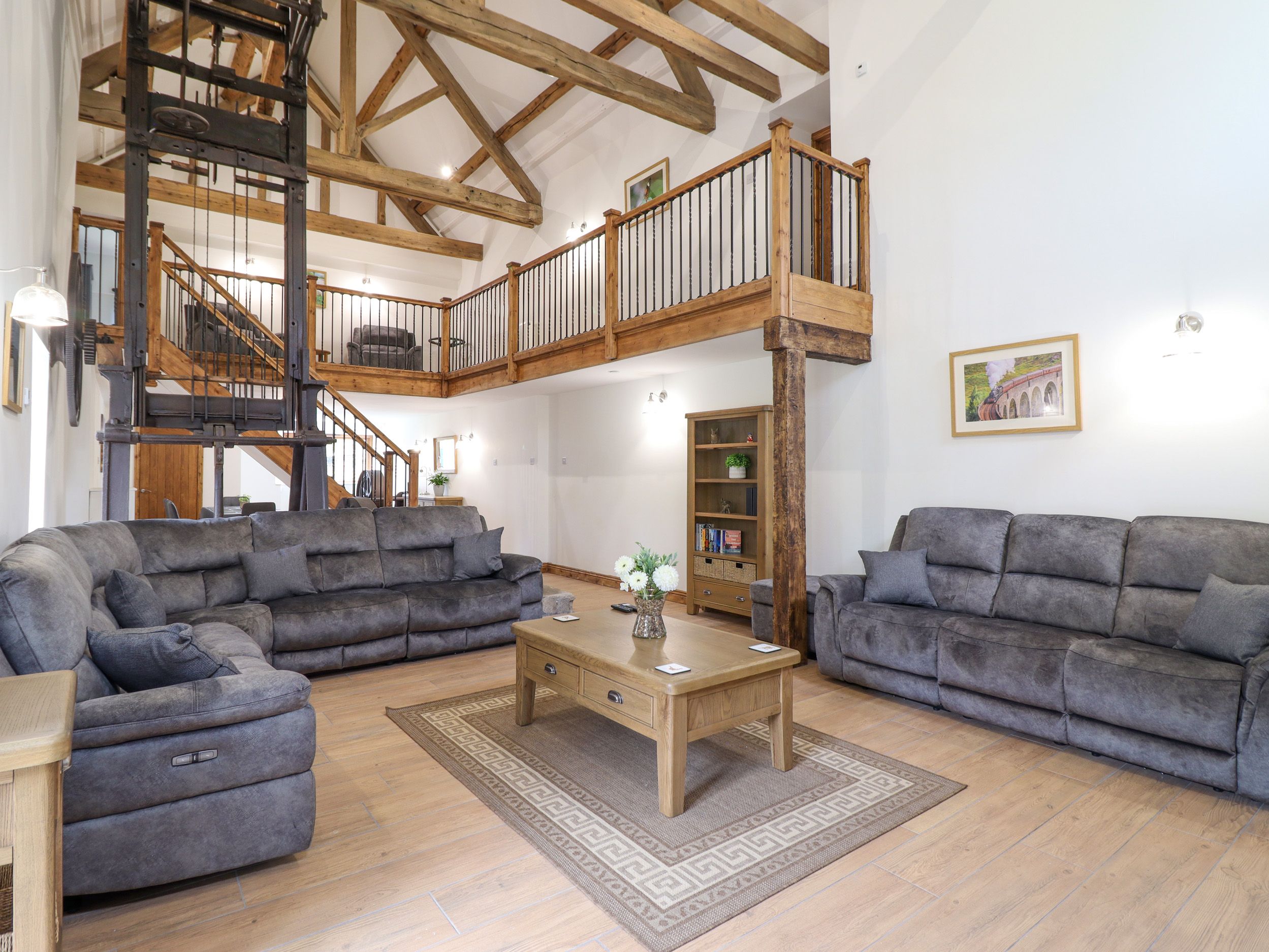 Holiday home Llwydiarth Saw Mill consists of a kitchen with a breakfast bar, double electric oven, hob, microwave, fridge/freezer, dishwasher, kettle, toaster, coffee machine, wine chiller, air fryer, a utility with washer/dryer, a living/dining room with woodburning stove, Smart TV and dining seating for ten, and a first-floor snug. The bedrooms include two super-king-size rooms with TV and en-suite, two king-size rooms and a twin along with a bathroom. Outside, there is a side enclosed patio with furniture, hot tub and barbecue as well as private driveway parking for eight cars. Four well-behaved pets welcome, but sorry, no smoking at this property. WiFi, fuel, power, bed linen and towels are all included in the price You can find a shop in 2.9 miles and a pub in 5.4 miles. Llwydiarth Saw Mill is a gorgeous destination for your stay in Powys, Wales.