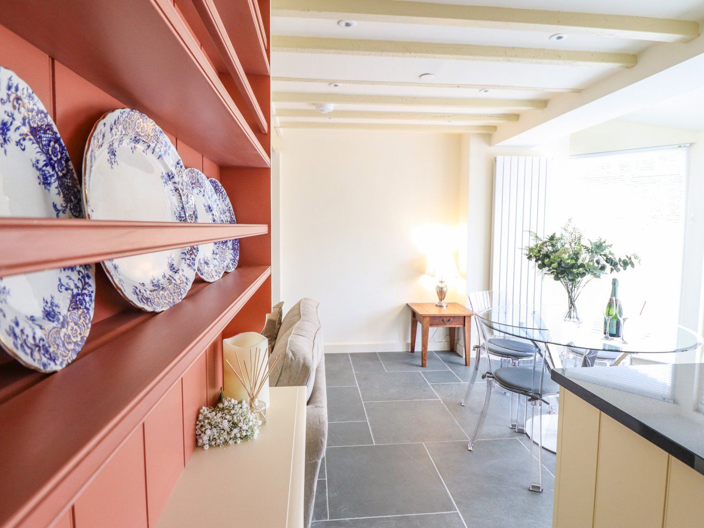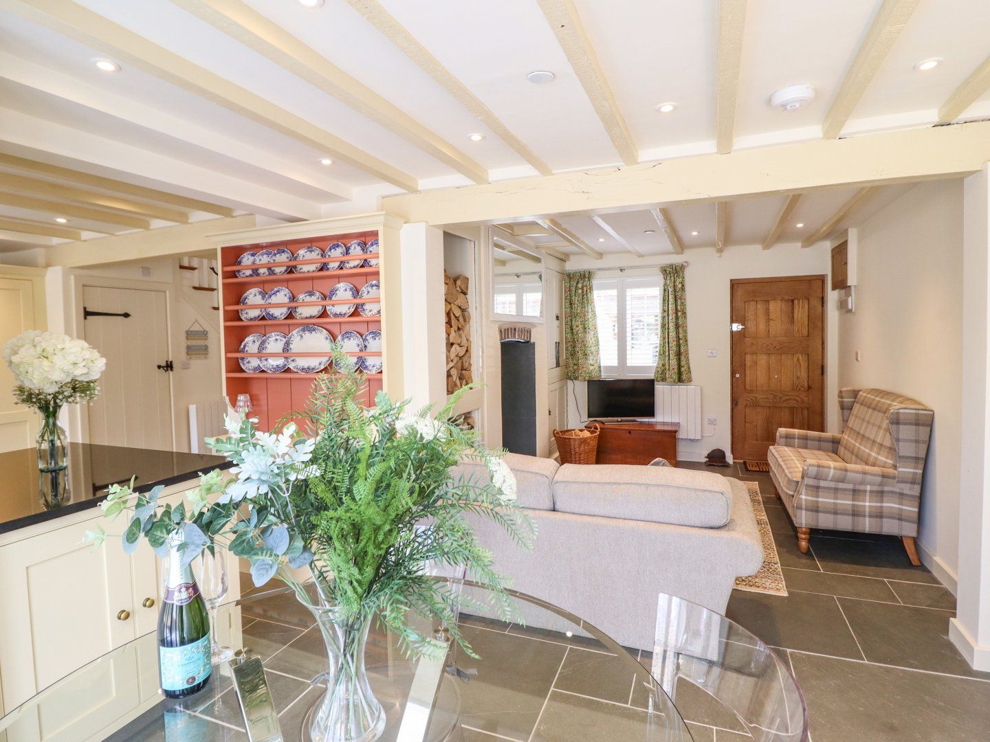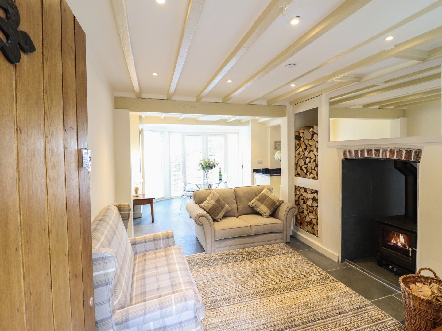Electric central heating with woodburning stove. Electric oven, induction hob, fridge/freezer, washing machine and dishwasher. Smart TV, WiFi. Fuel, power, and starter pack for woodburning stove inc. in rent. Bed linen and towels inc. in rent. Roadside parking for 1 car only. Enclosed rear garden with patio, furniture, and barbecue. Sorry, no pets and no smoking. Shop and pub 0.1 miles. Please note: There is no parking available for vans.