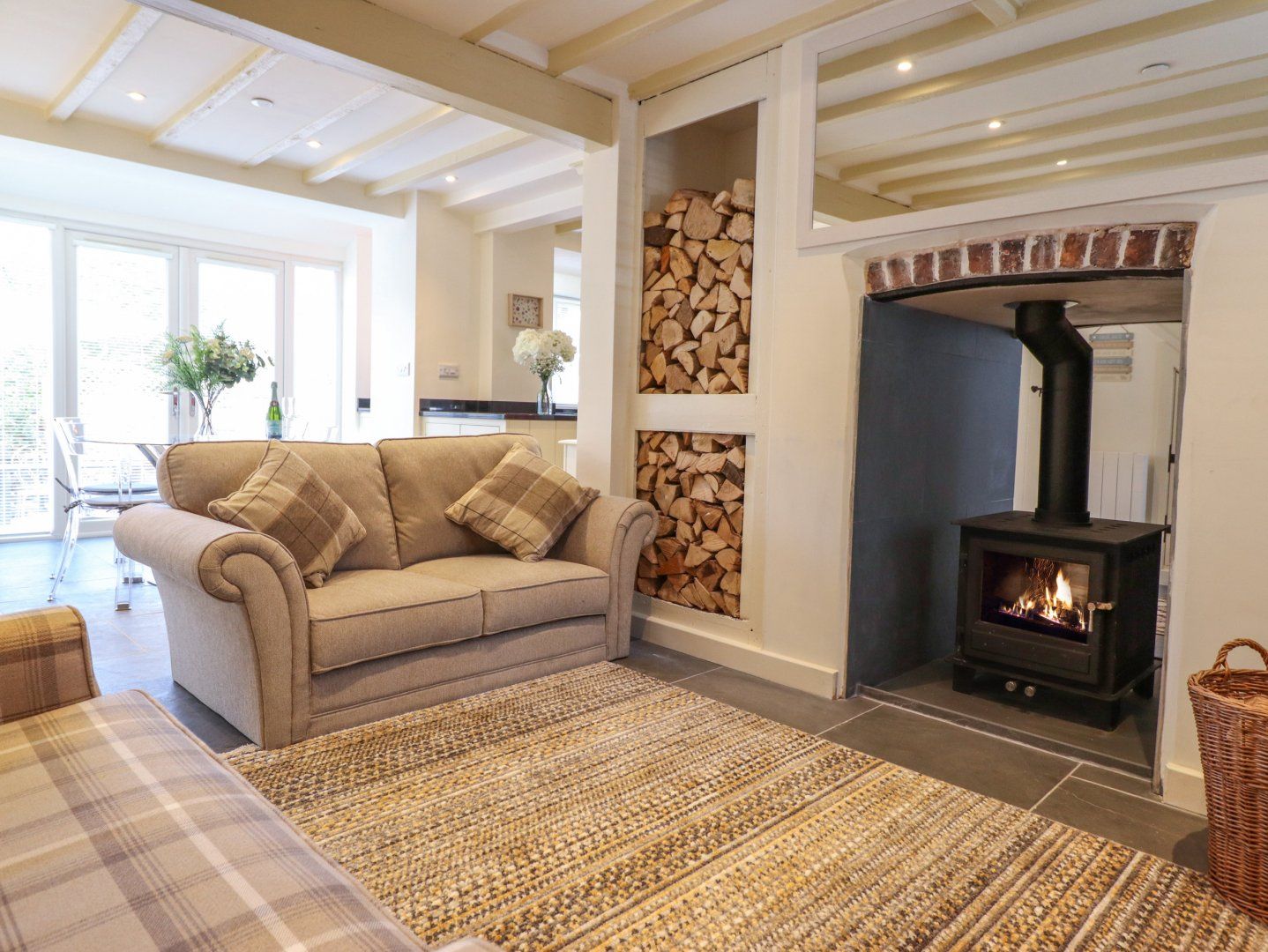 Accomodation Details Three bedrooms: 1 x king-size, 2 x singles. Shower room with walk-in shower, basin, heated towel rail and WC. Cloakroom with basin and WC. Open-plan living space with kitchen, dining area and sitting area with woodburning stove