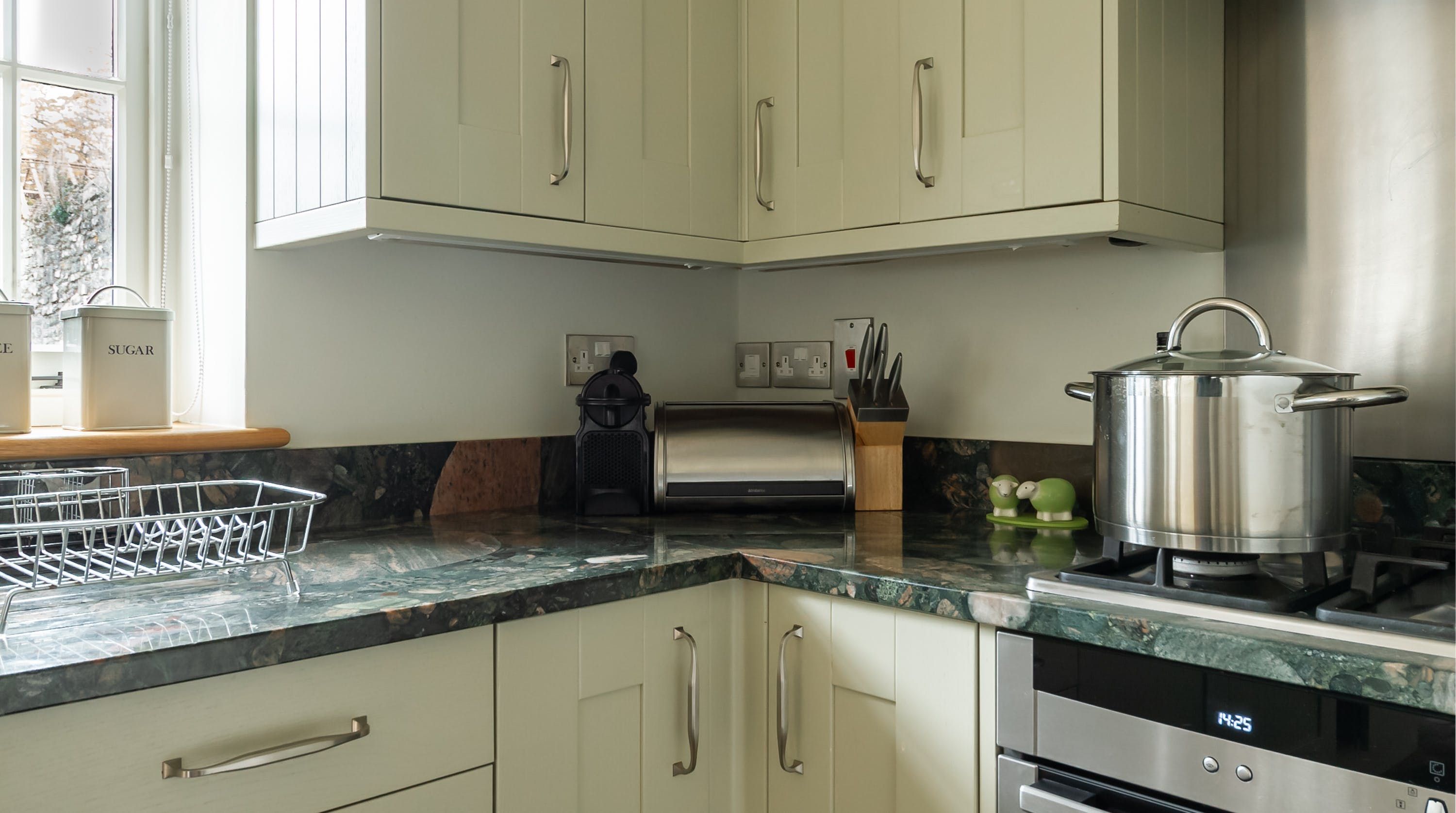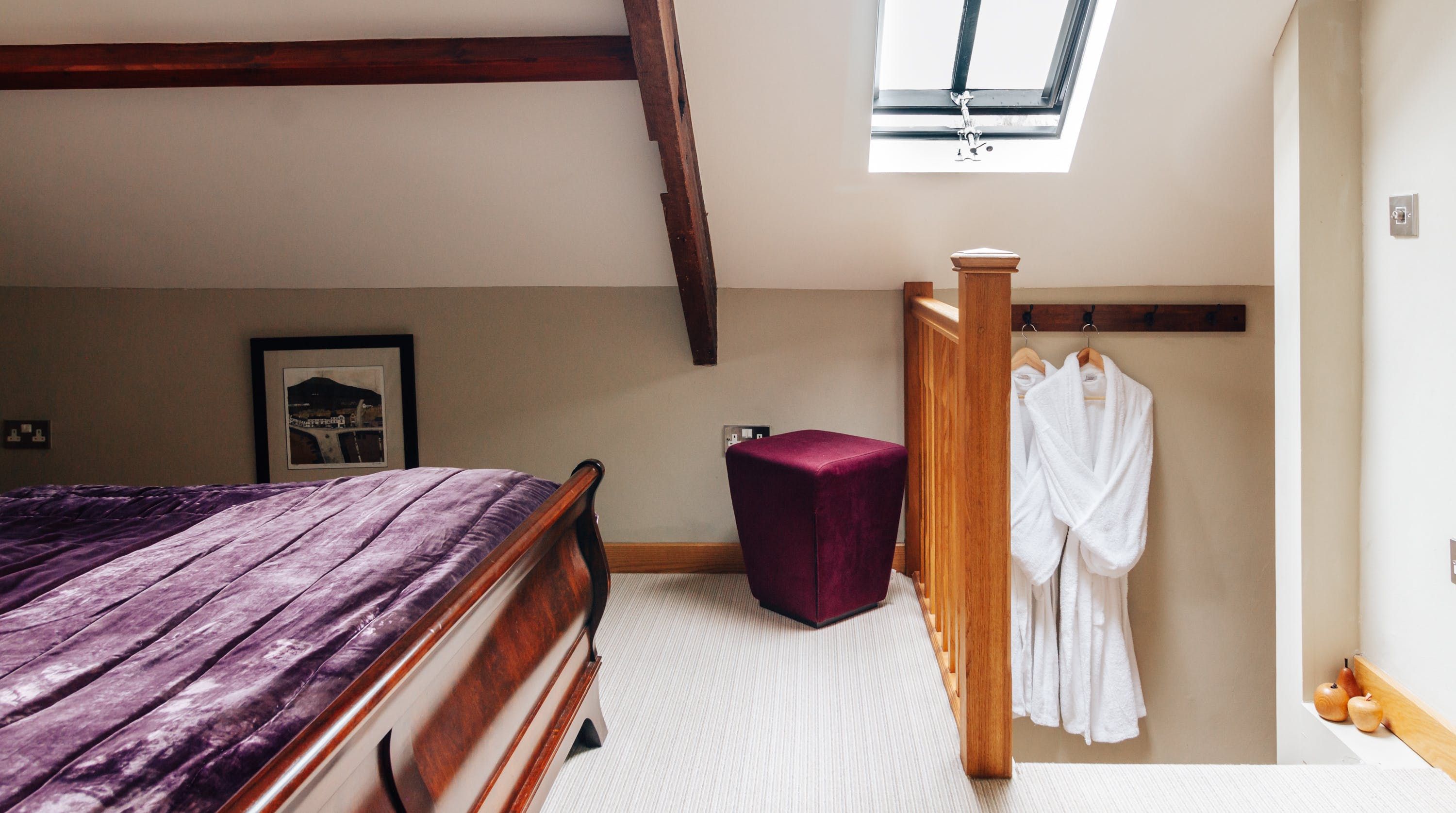 If you’re looking for a peaceful escape to the Brecon Beacons with a few luxuries thrown in, this is the cottage for you. Set within 12 acres of estate grounds, there are plenty of walks for dogs and humans alike. If you’re seriously into your hiking, then the trails right from the cottage’s front door into the peaks of the Brecon Beacons (including Pen Y Fan) won’t disappoint. For the more sedate option, follow the flat canal path into the charming town of Brecon for cafés and shops. On returning, treat yourself to a complimentary massage at The Treatment Studio in the estate. The cottage itself radiates history from its old stone walls and low, timber-beamed ceilings. A little library of books and wood-burner in the living room adds to that away-from-it-all feeling. In the kitchen and living room, the flagstone floor is heated underfoot so there’s no sacrificing comfort for aesthetics here. Upstairs, the master bedroom comes with a glorious sleigh bed to send you off to sleep.