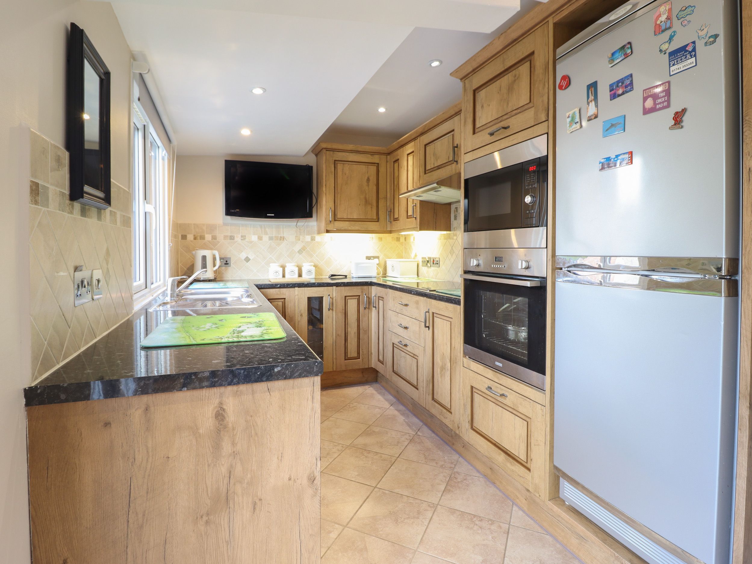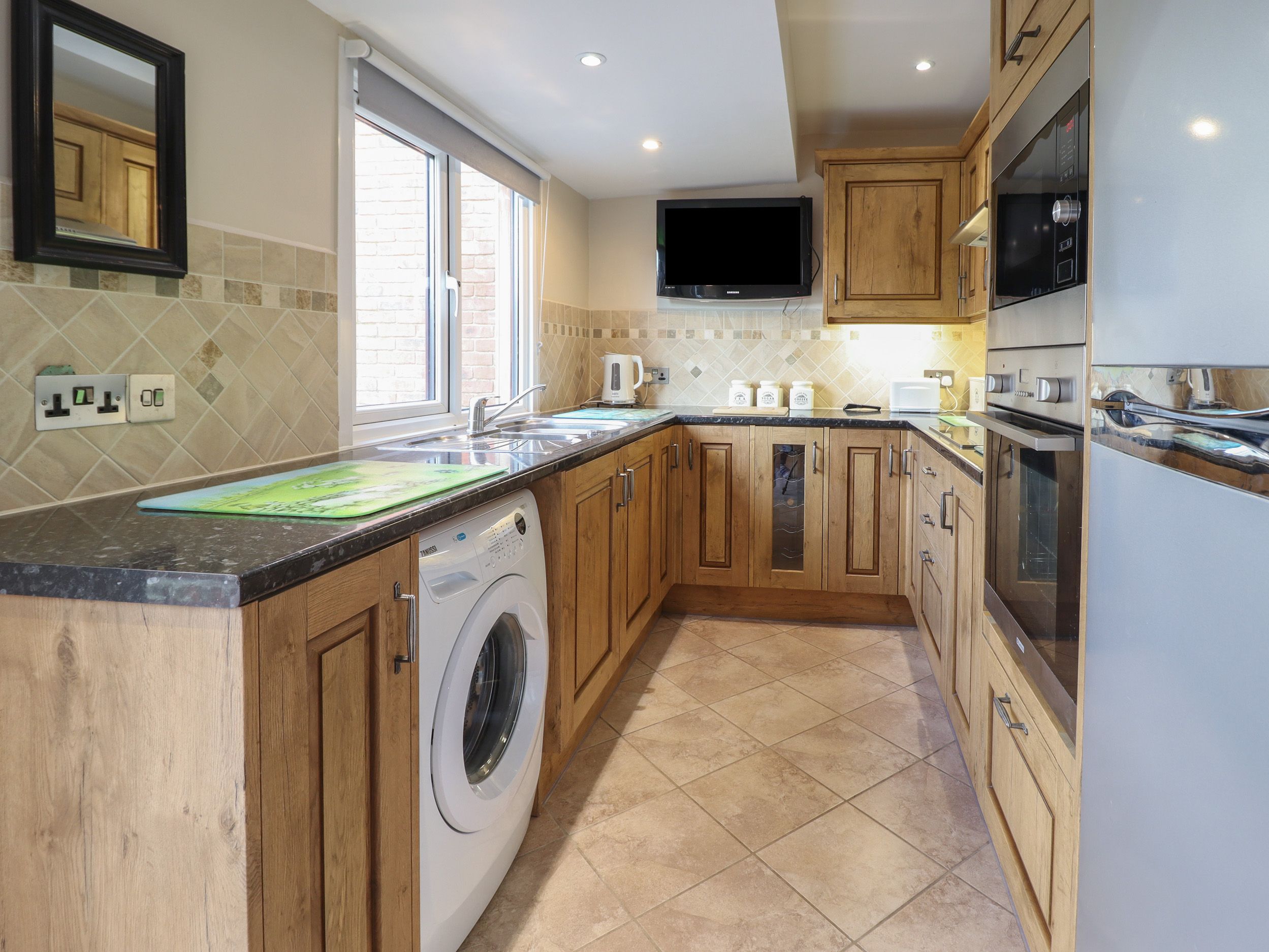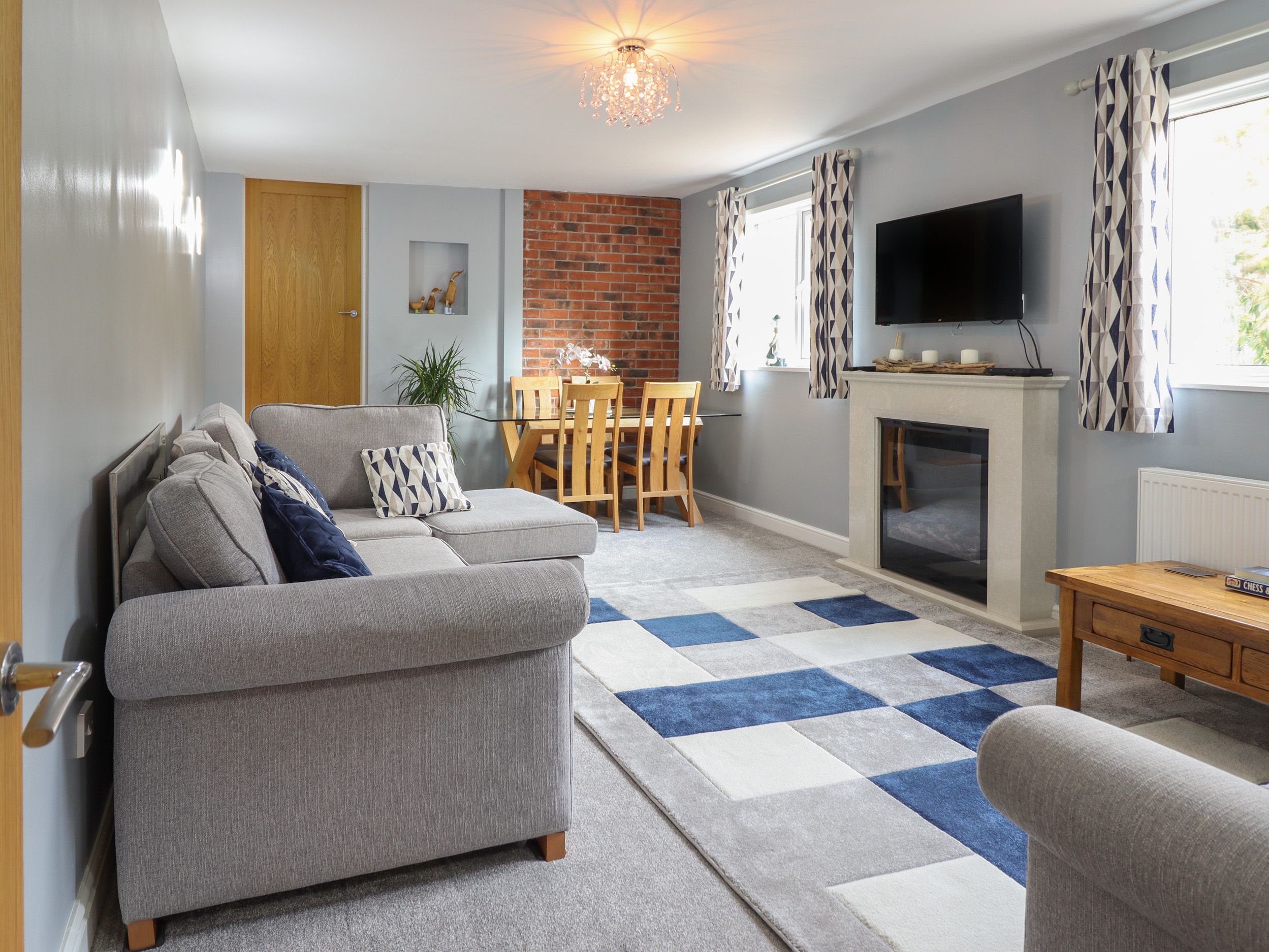Amenities Gas central heating. Electric oven and induction hob, microwave, fridge/freezer, washing machine, kettle and toaster. 2 x Smart TVs, WiFi, selection of books and games. Fuel and power inc. in rent. Bed linen and towels inc. in rent. Highchair and travel cot available. Public car park. Enclosed wraparound patio garden with furniture. Sorry, no pets and no smoking. Shop 2.1 miles, pub 2.1 miles. Note: There are steps down to garden seating area and car park. Note: There are steps down from the balcony. Note: Owners live next door