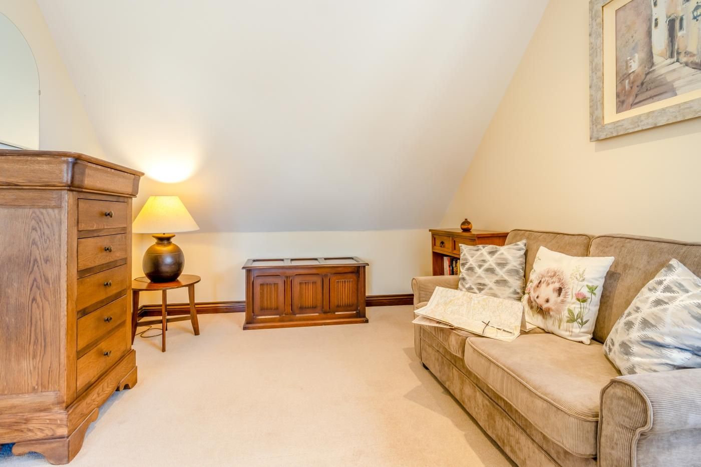 In an elevated setting within a small group of cottages, this handsome stone property is a welcoming and comfortable escape.