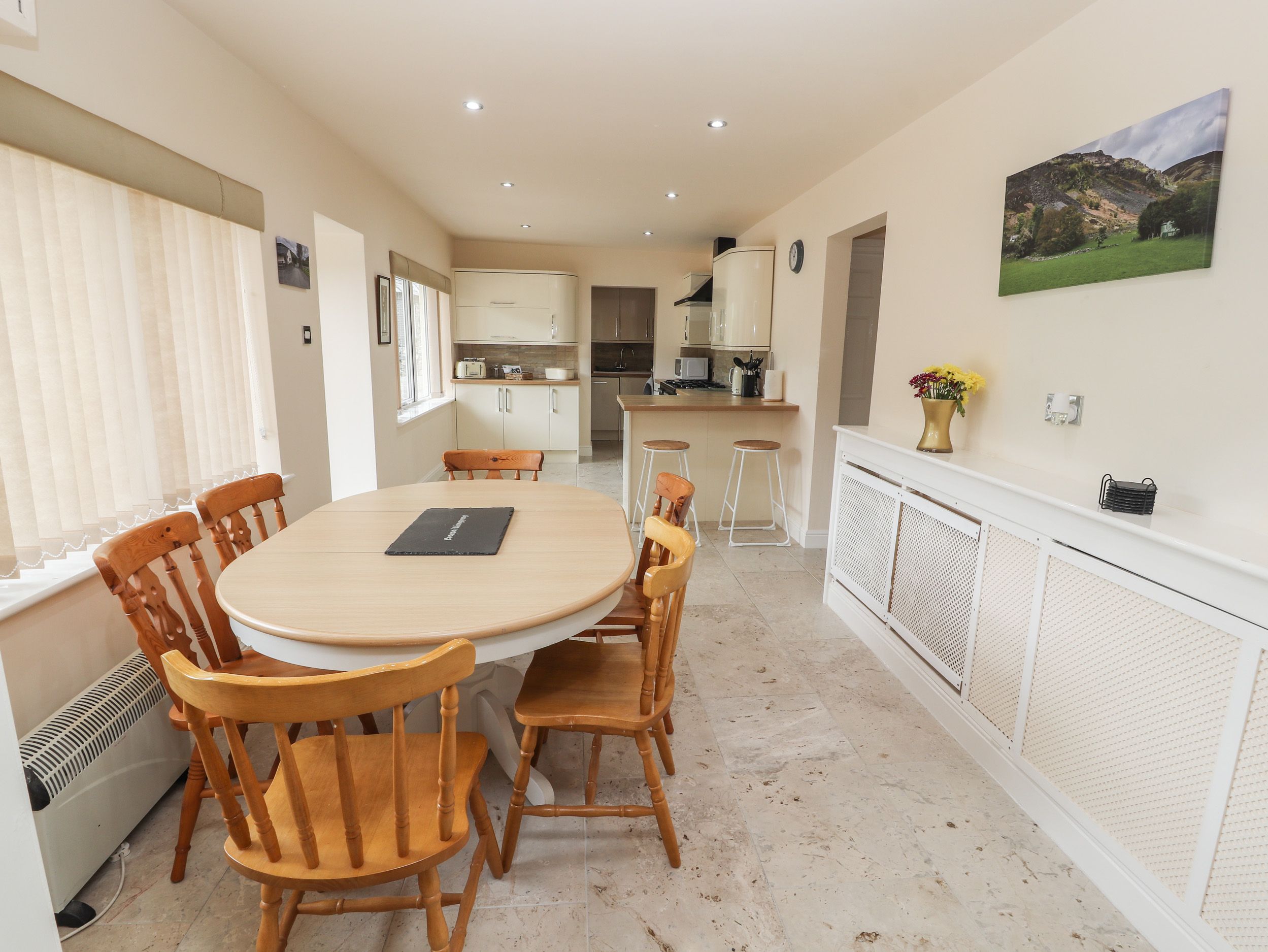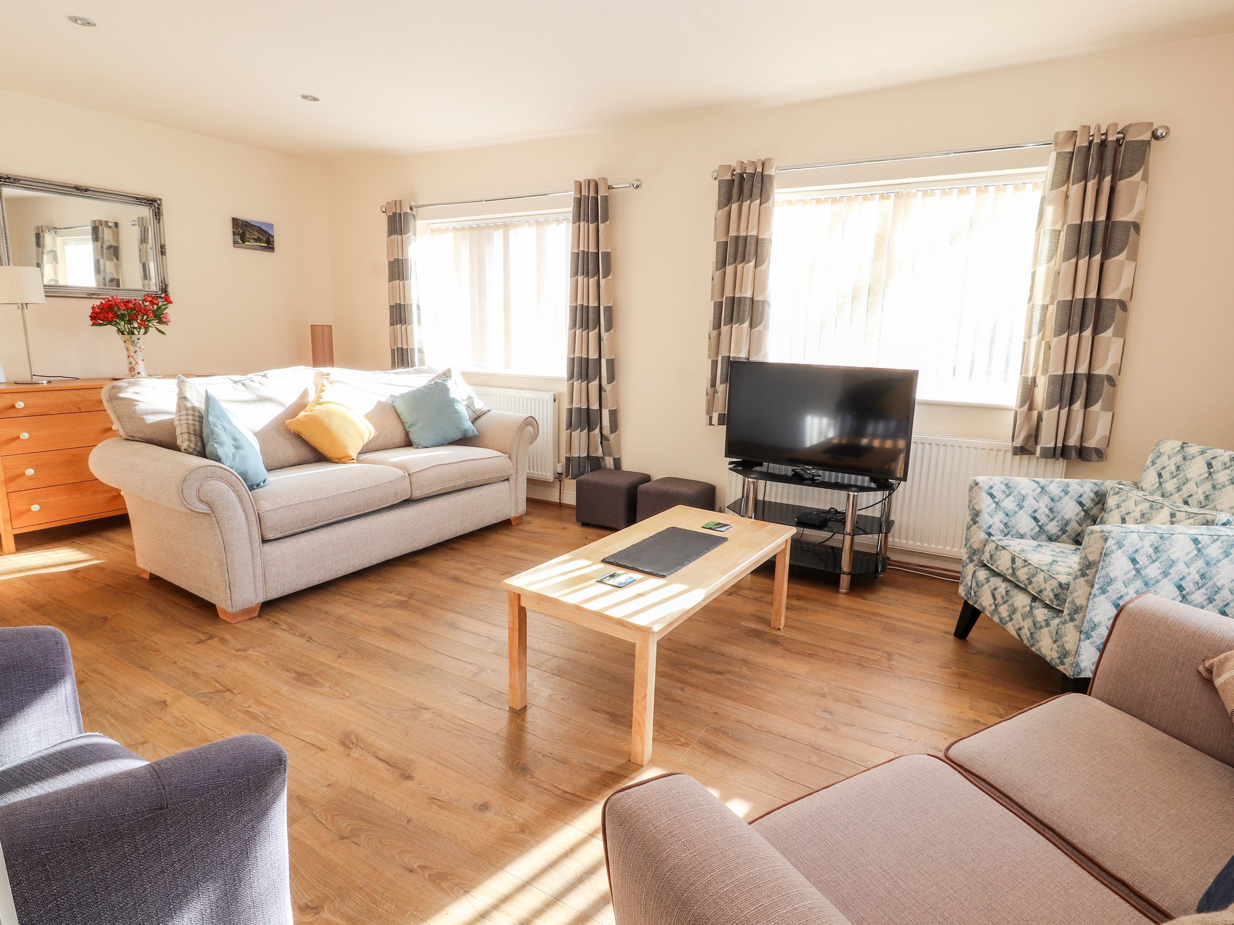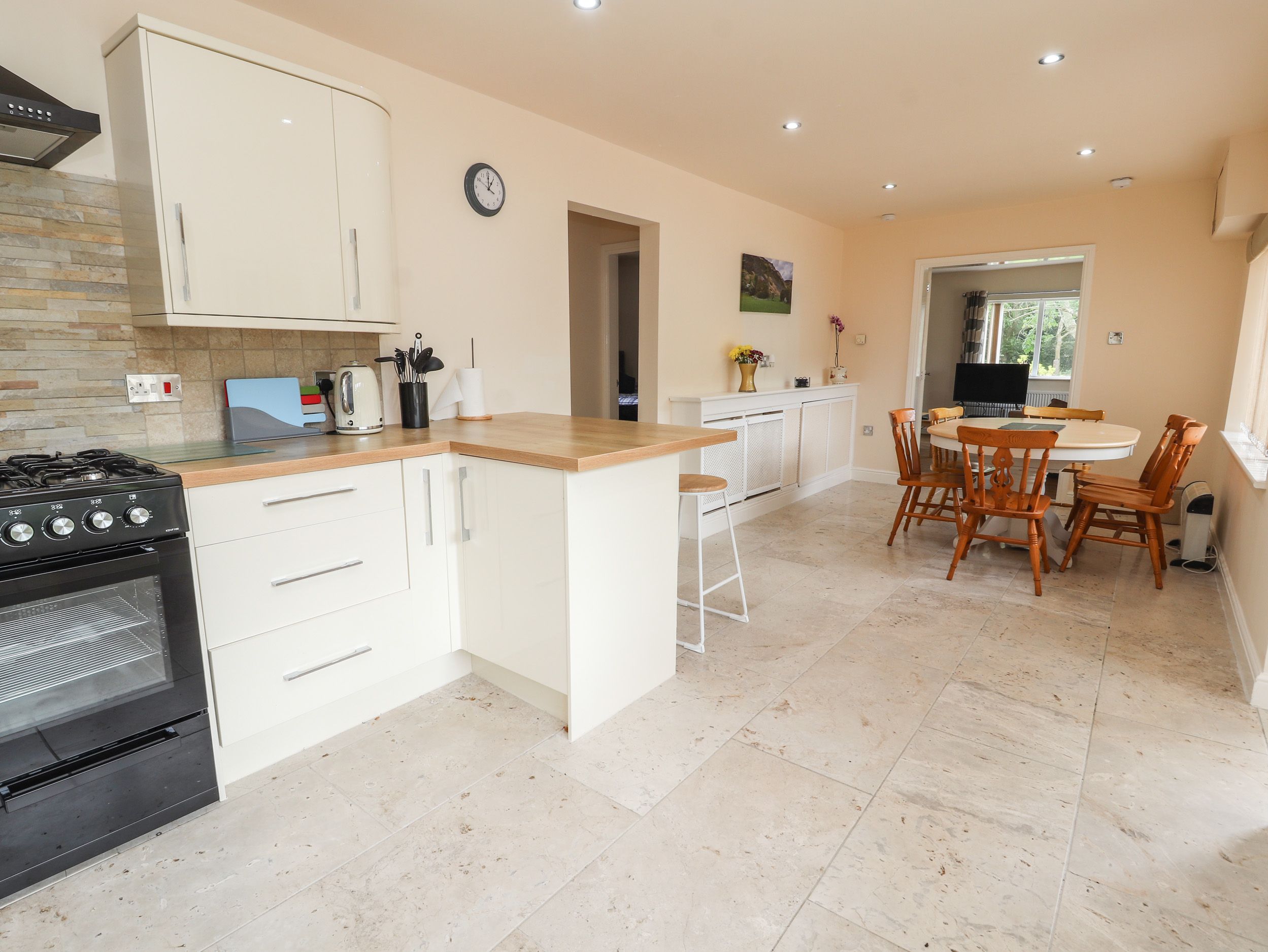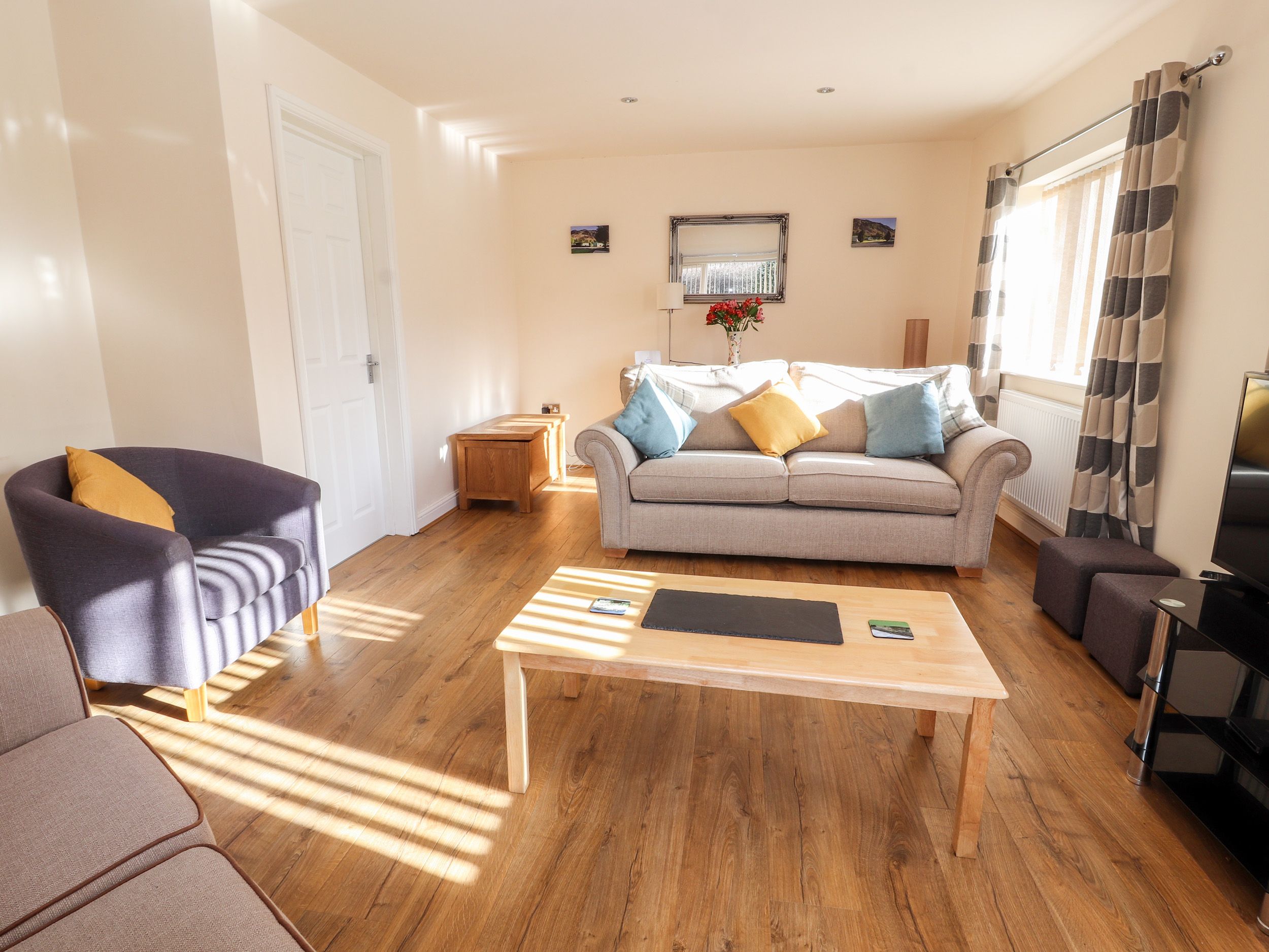 Amenities Gas central heating. Electric oven and 7-ring gas hob, microwave, fridge/freezer, dishwasher, washing machine. TV with Freeview, WiFi. Fuel and power inc. in rent. Bed linen and towels inc. in rent. Travel cot and highchair available. Off-road parking for 2 cars. Enclosed garden. Two well-behaved pets welcome. Sorry, no smoking. Shop 5.1 miles, pub 0.1 miles. Note: Check-in from 4pm, check out by 10am. Note: 3 seater sofa bed in sitting room opens up to a double bed suitable for 2 adults. Note: This property is for a maximum of 6 people