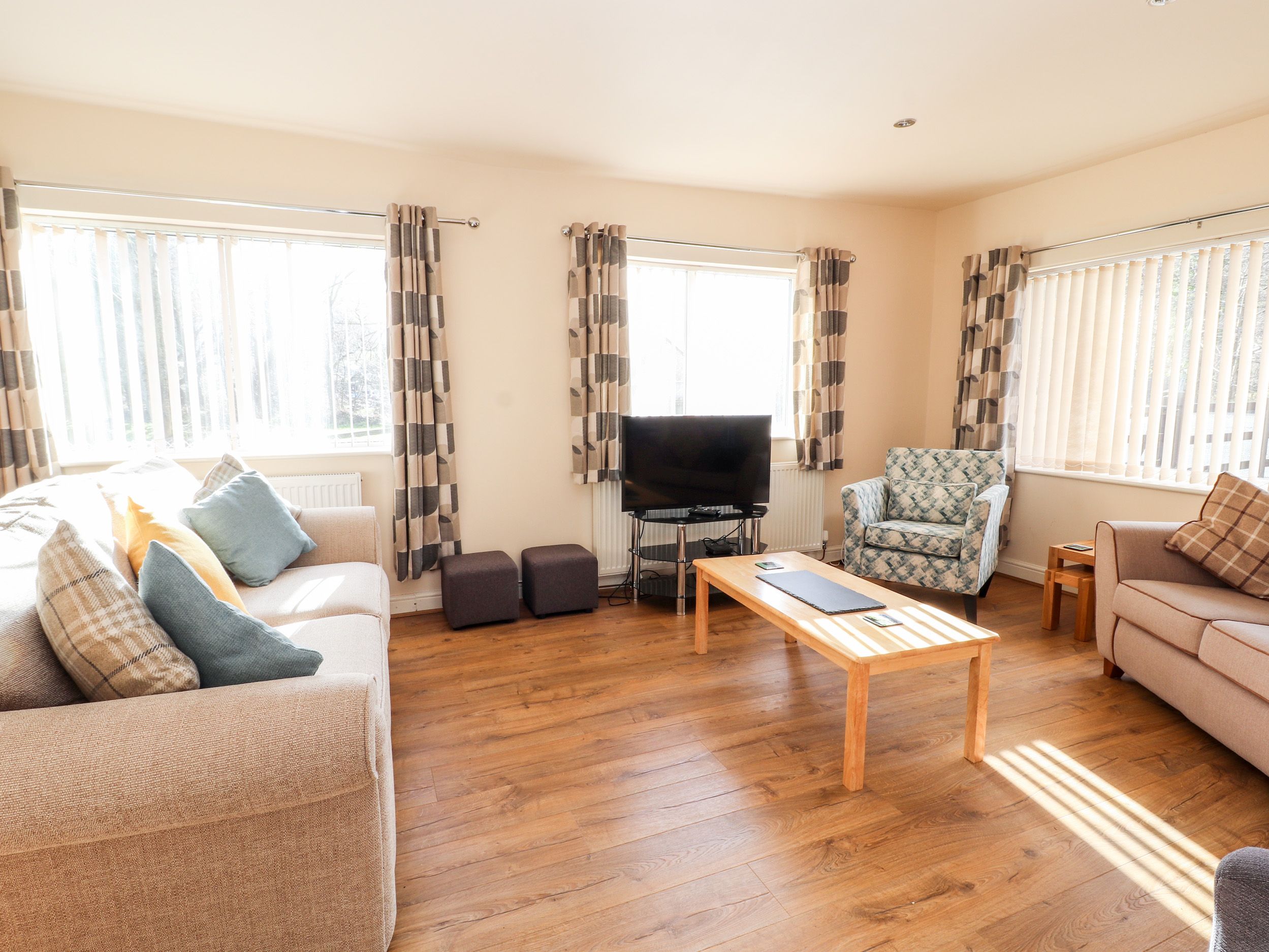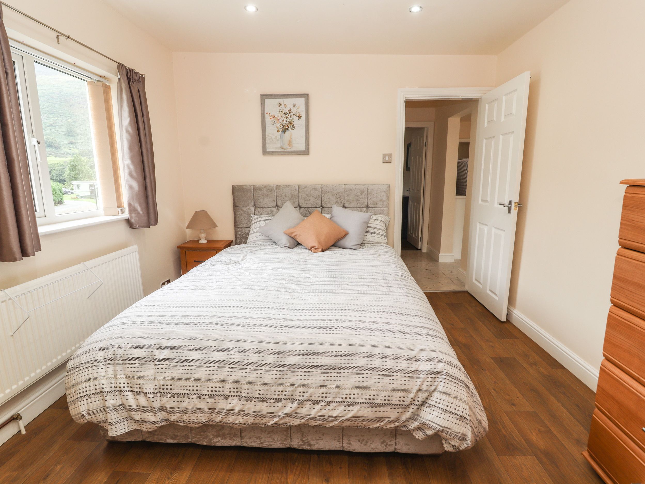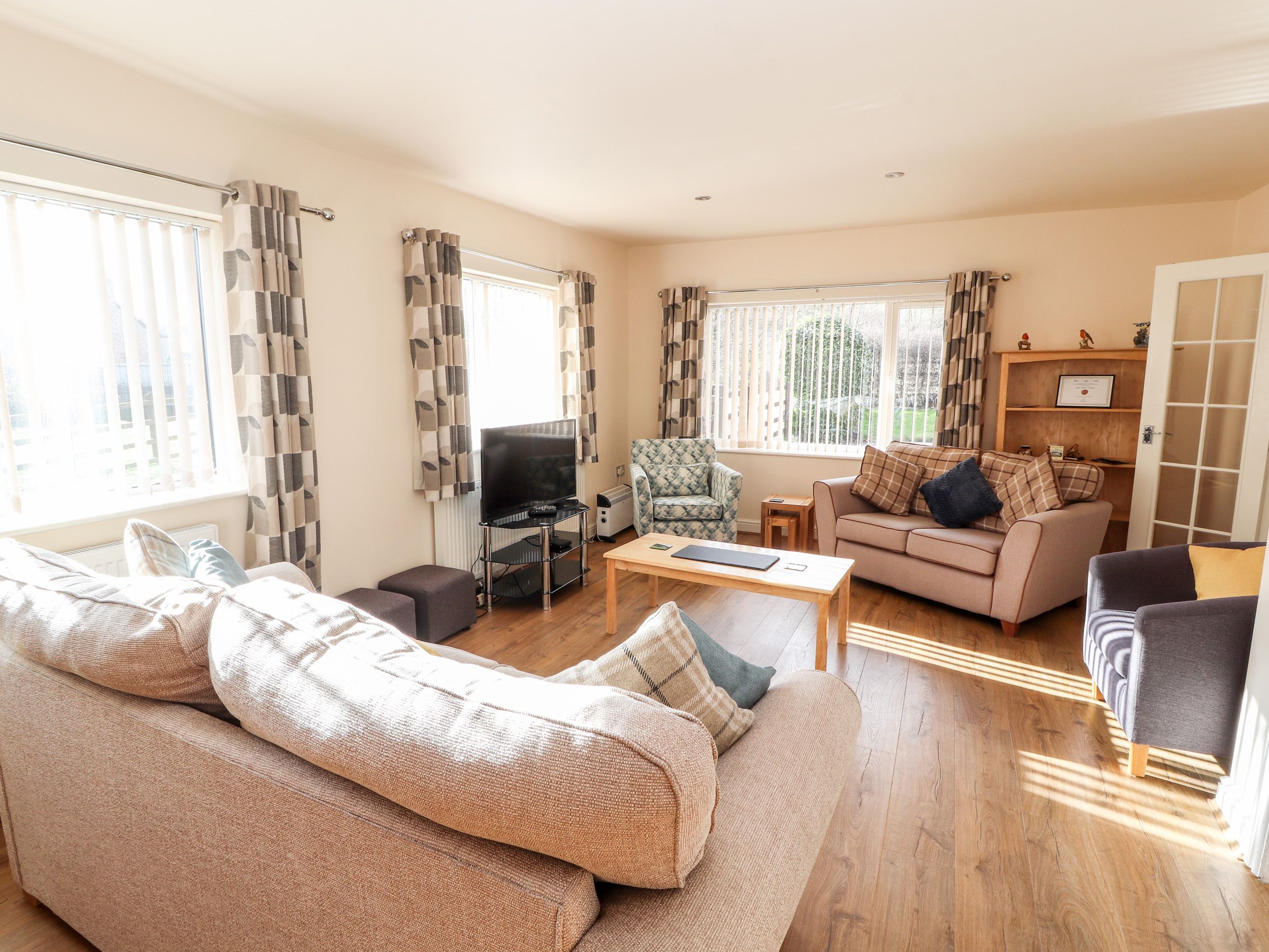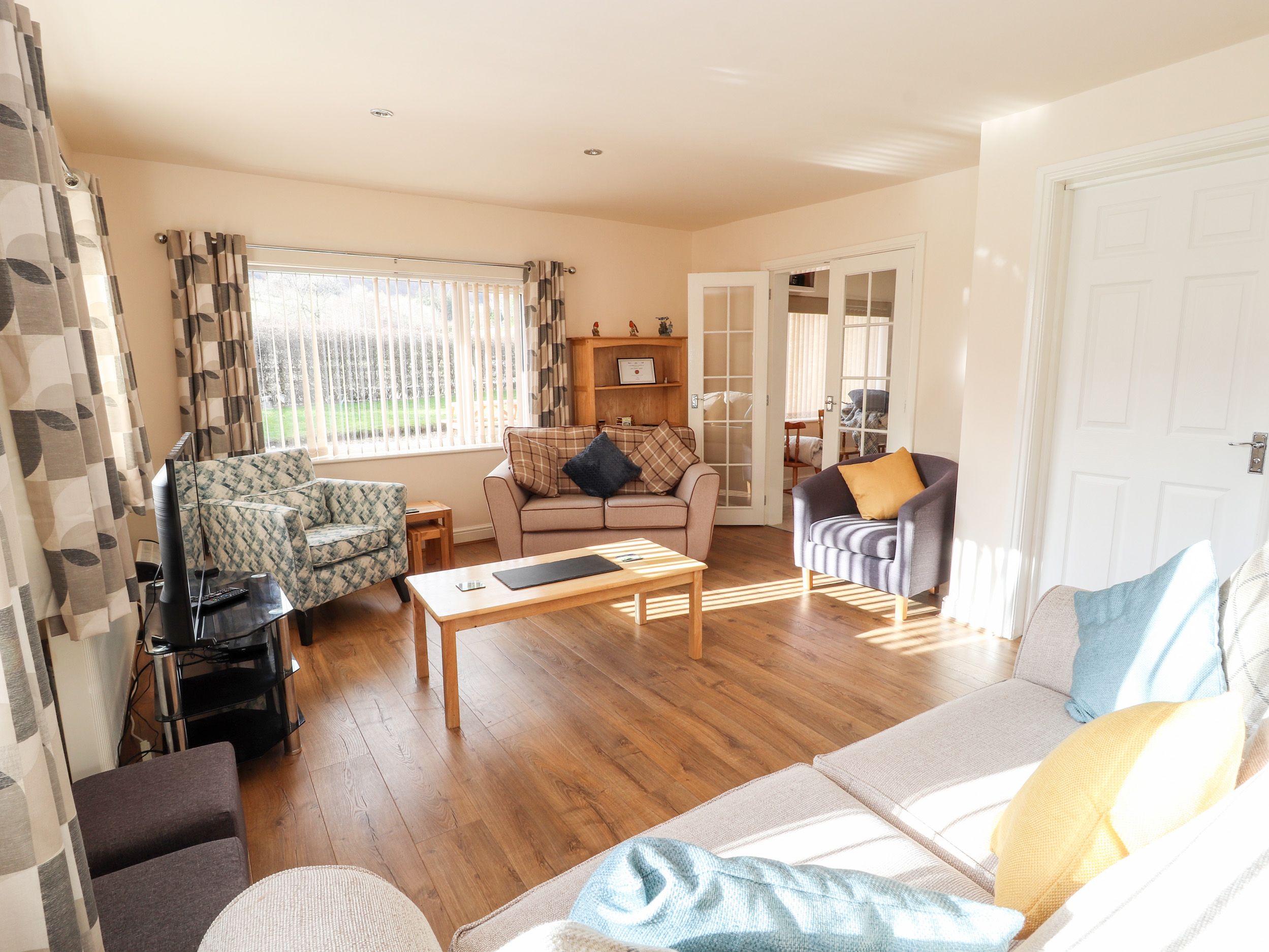 Accomodation Details All-one-level. Two bedrooms: 1 x king-size, 1 x twin. Shower room with walk-in shower, basin and WC. Kitchen/diner. Sitting room with sofa bed