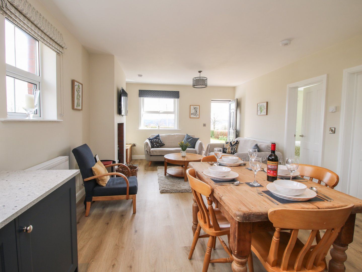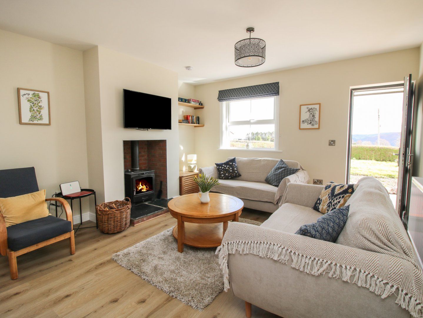 Amenities Oil-fired central heating. Electric oven, induction hob, microwave, fridge, freezer, washing machine, tumble dryer, dishwasher. Smart TV, WiFi. Fuel, power, and starter pack for woodburning stove inc. in rent. Bed linen and towels inc. in rent. Highchair and travel cot available. Private driveway for 3 cars. Back garden with lawn, enclosed rear garden with patio and lawn, and furniture, and access to garage for storage. Sorry, no pets and no smoking. Shop and pub 1.4 miles. Note: The gardens are not enclosed. Note:Bookings must start on a Friday or a Monday
