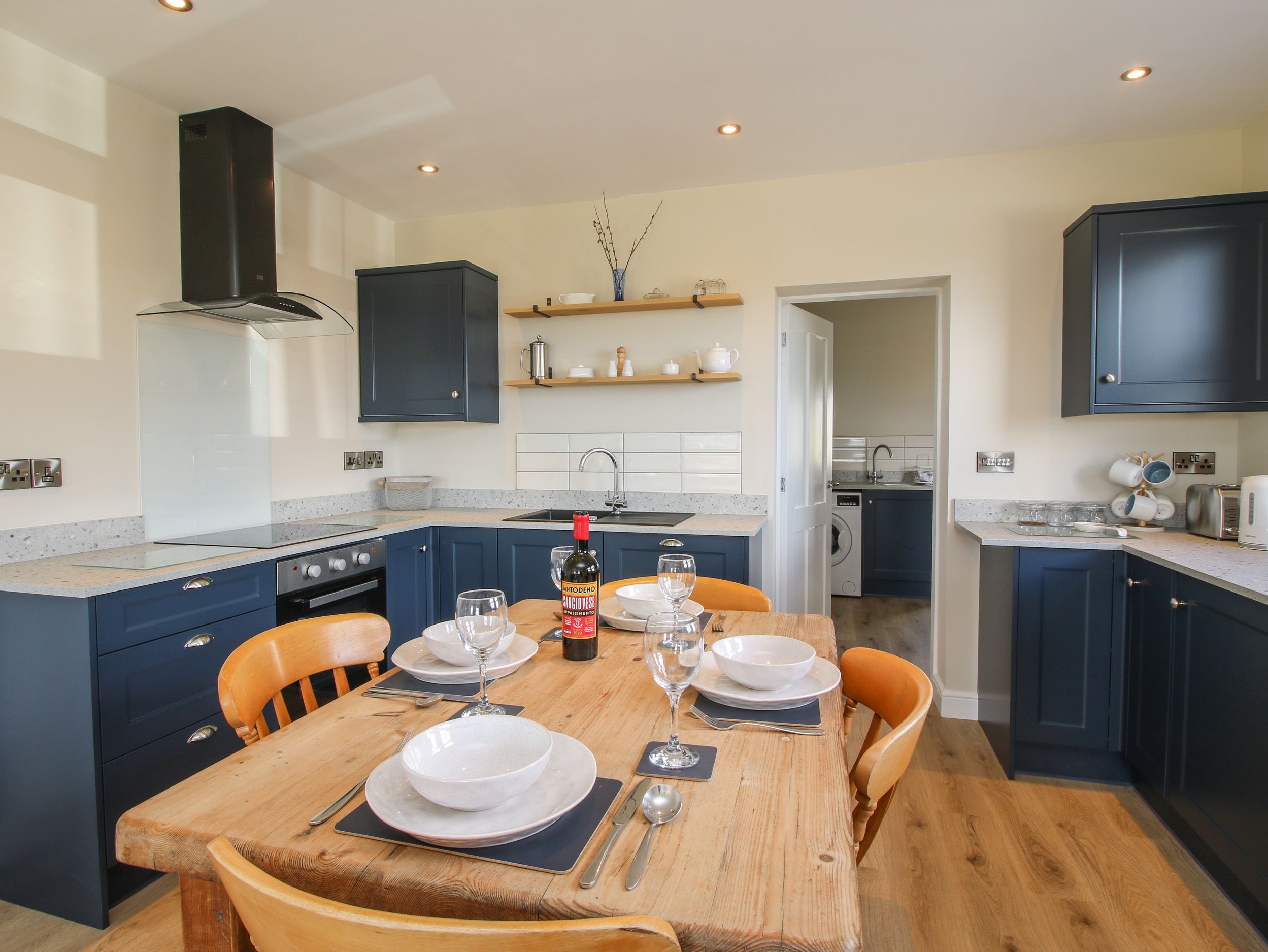 Accomodation Details Single-storey. Two bedrooms: 1 x super-king-size (zip/link, can be twin on request), 1 x twin (zip/link, can be super-king-size on request). Bathroom with bath, walk-in shower, basin, and WC. Open-plan living space with kitchen, dining area and sitting area with woodburning stove. Utility