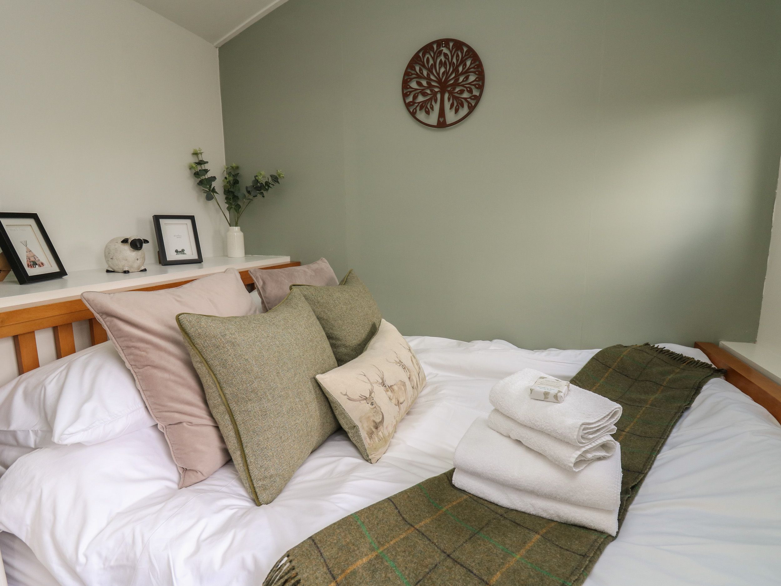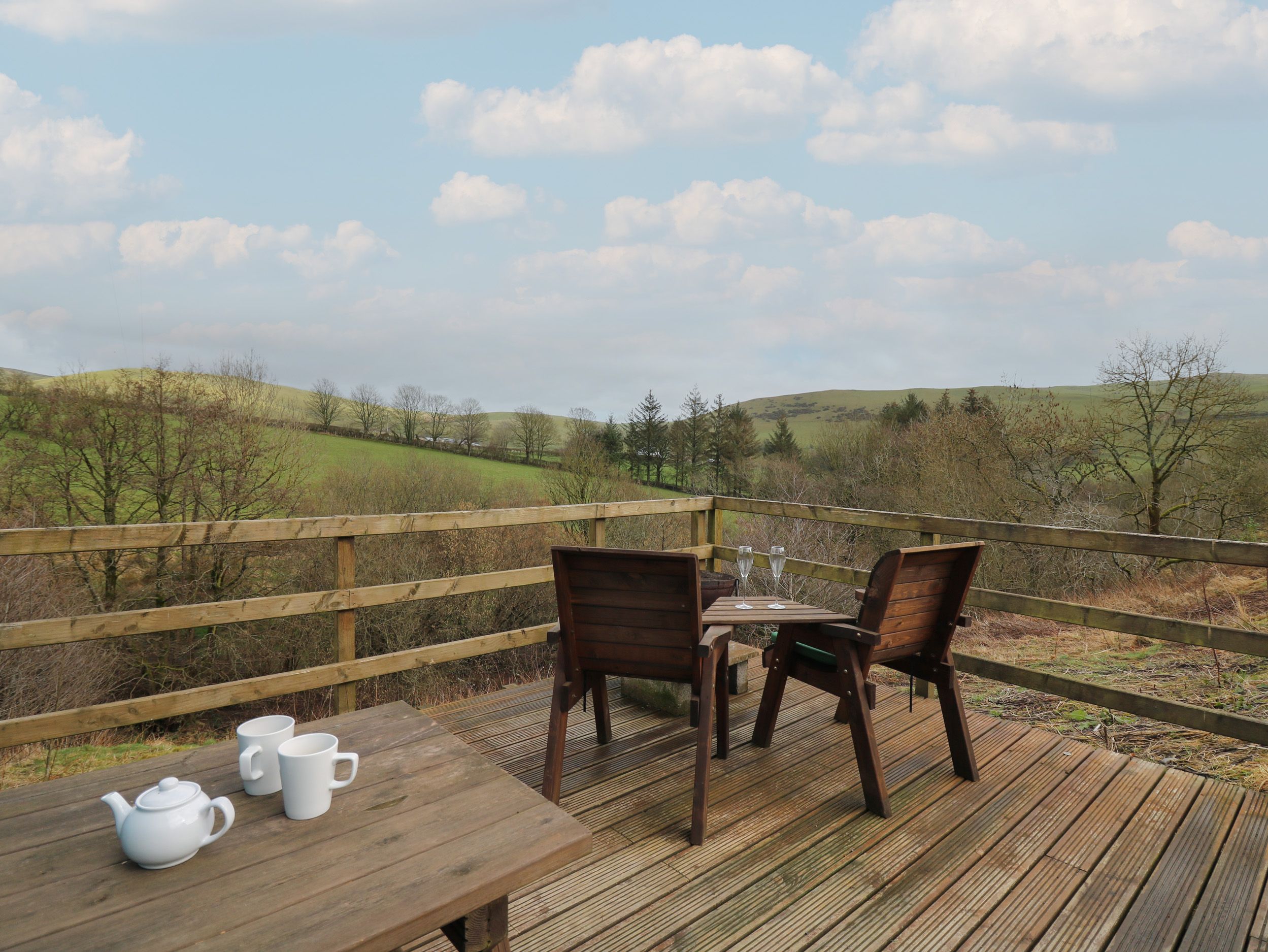 Holiday home Cuckoo Hut, a single-storey lodge consists of a kitchen with an electric 2-ring hob, microwave, fridge with ice compartment, toaster, kettle, and a dining table with woodburning stove. The bedroom consists of a king-size with Smart TV, along with shower room. Outside, there is a private side garden with decking, BBQ, fire pit, furniture and off-road parking for two cars. Two well behaved dogs welcome. Within 3.3 miles, you will find a shop, and within 3.2 miles, a pub. Please note that this is a non-smoking property. WiFi, fuel, power, starter pack for woodburning stove, bed linen, and towels are all included in the price. Cuckoo Hut is a welcoming stay for an escape to the country of Wales. Note: The garden is not enclosed, dogs must be supervised at all times. Note. There are steps down to the decking and up to the property, please take care. This property has a good housekeeping bond of GBP 50.