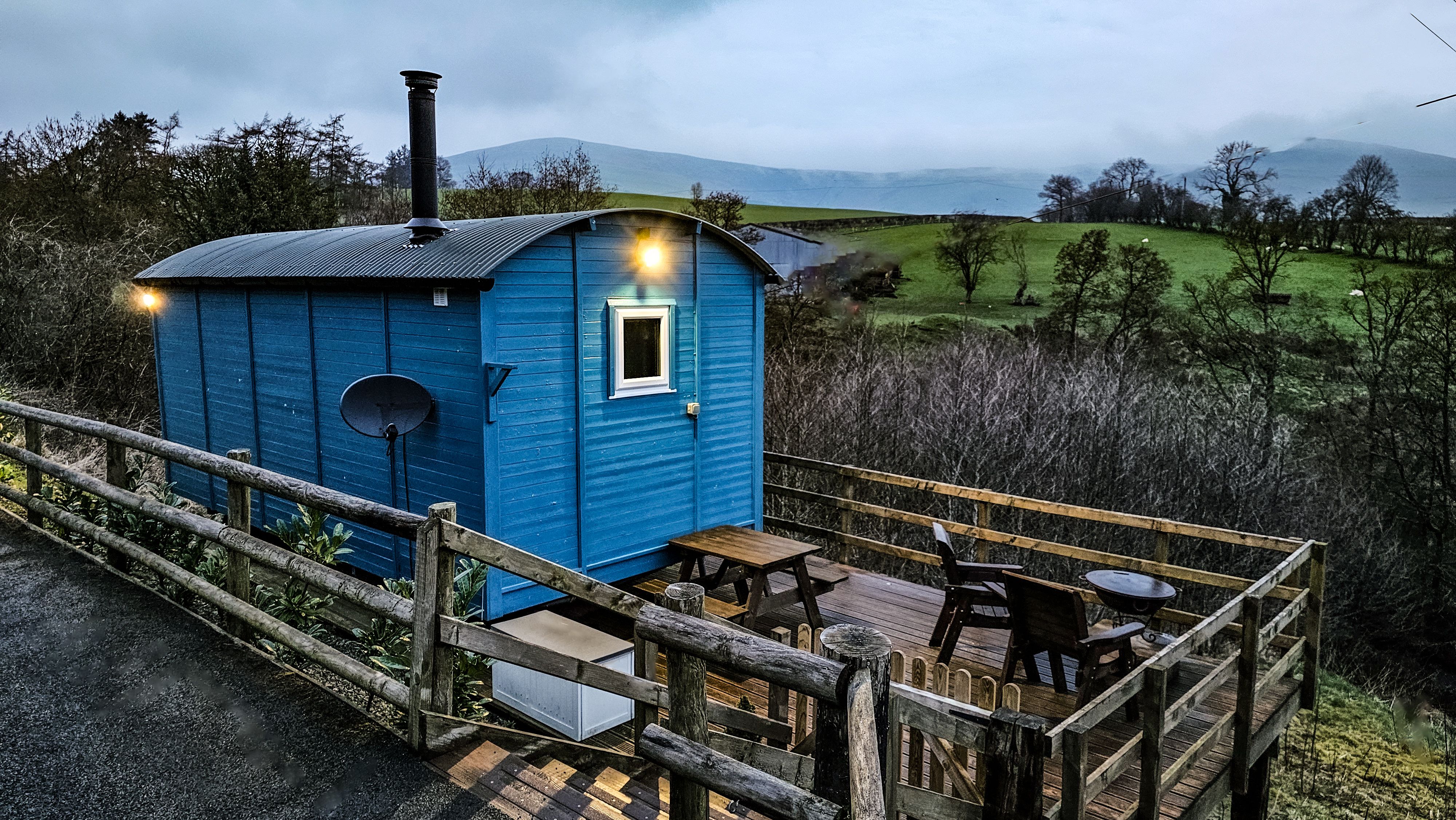 Amenities Electric central heating. Electric 2-ring hob, microwave, fridge with ice box, toaster, kettle. Smart TV and WiFi. Fuel, power, and starter pack for woodburning stove inc. in rent. Bed linen and towels inc. in rent. Off-road parking for 2 cars. Private, enclosed side garden with decking, BBQ, fire pit and furniture. Two well behaved dogs welcome. Sorry, no smoking. Shop 3.3 miles, pub 3.2 miles. Note: The garden is enclosed but not 'escape-proof', dogs must be supervised at all times. Note: There are steps down to the decking and up to the property, please take care.