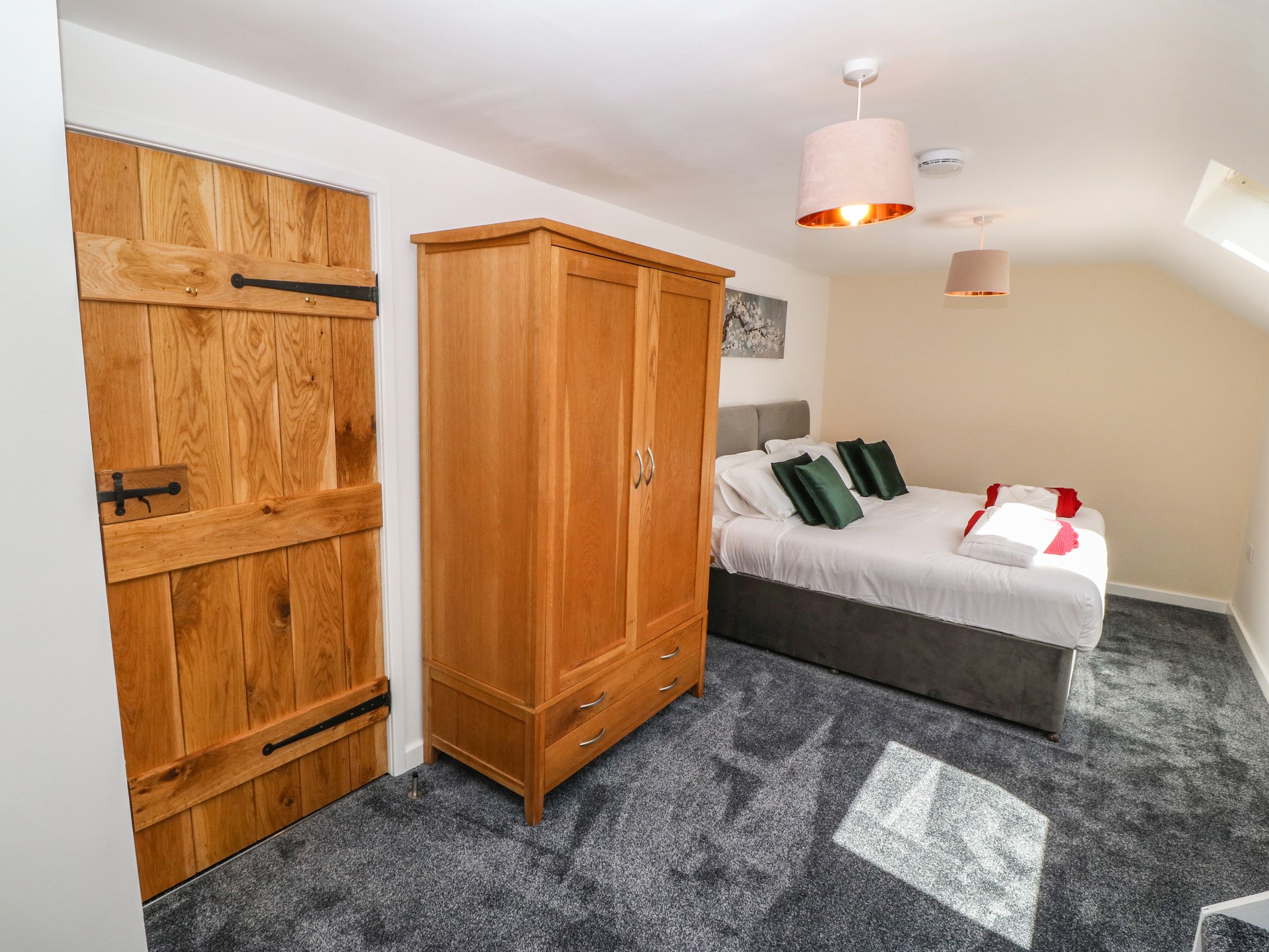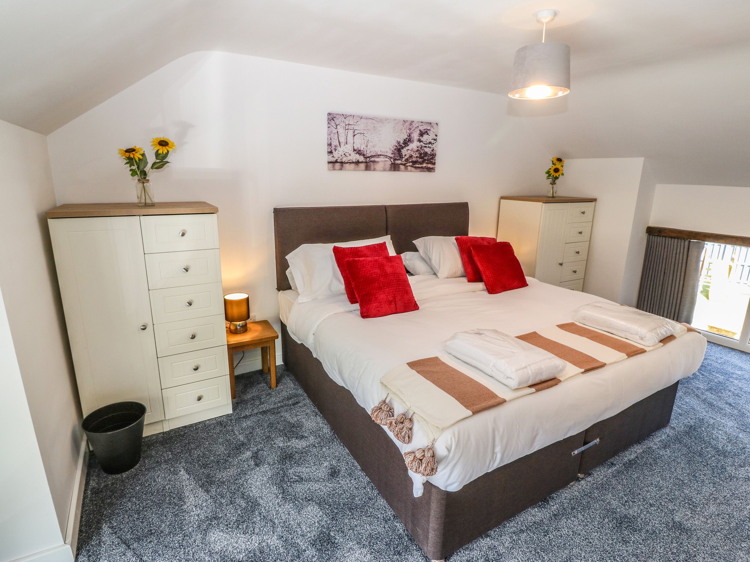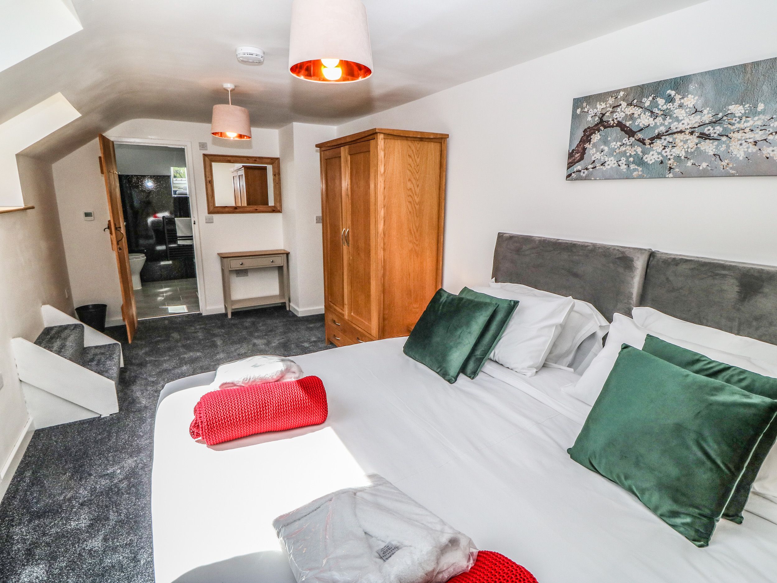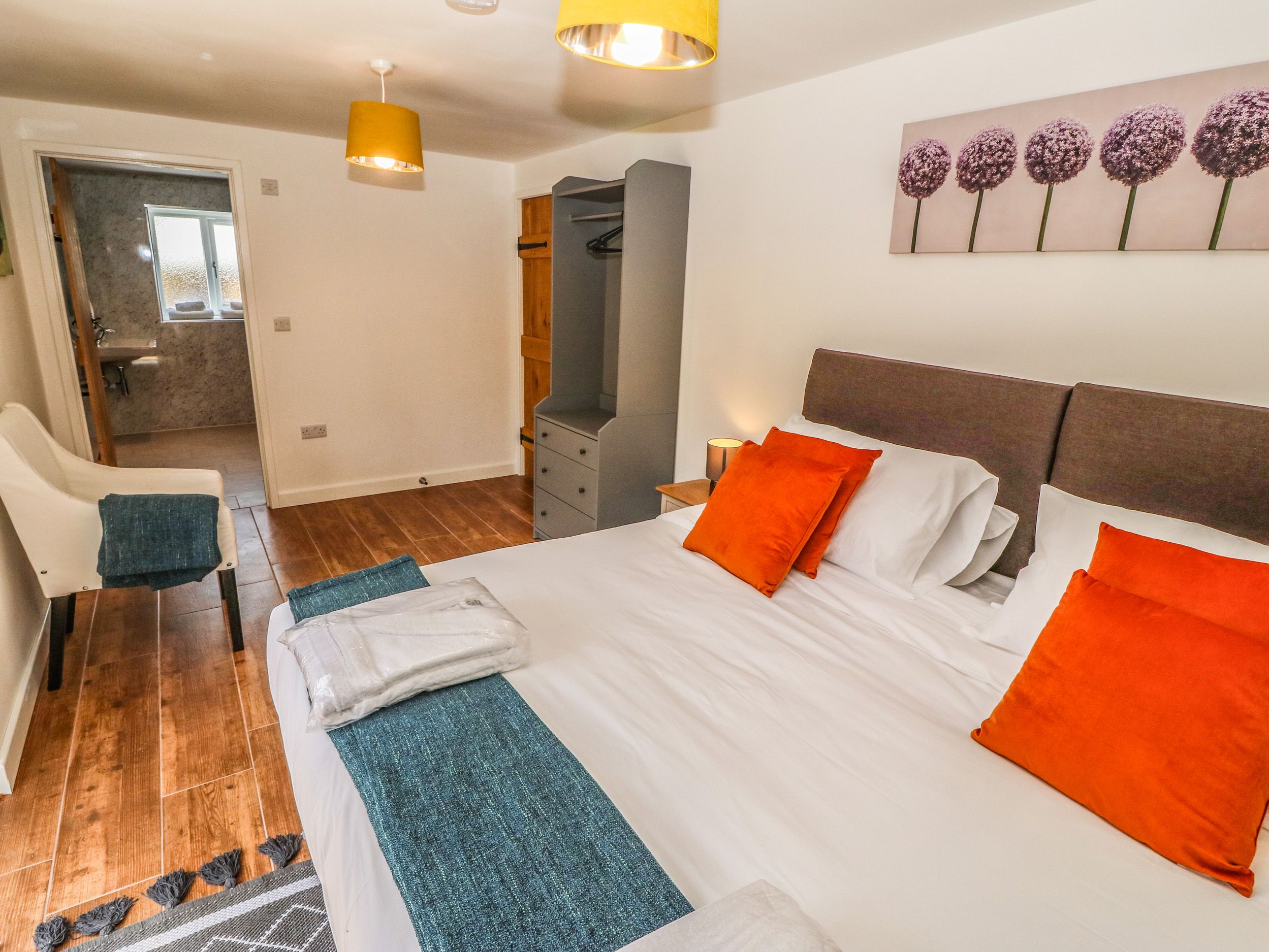 Holiday home Y Beudy is an exceptional property resting in Pedairffordd near Llanrhaeadr-Ym-Mochnant, Wales. It comes with four bedrooms, comprising of two ground-floor king-size (zip/link can be twins on request) with en-suite walk-in shower, basin, heated towel rail and WC, a king-size (zip/link can be twins on request) with en-suite bath, walk-in shower, basin, heated towel rail and WC and a king-size (zip/link can be twins on request) with en-suite walk-in shower, basin, heated towel rail and W, together sleeping up to eight people. Concluding the interior is an open-plan living room with kitchen, dining area and sitting area with woodburning stove, as well as a utility and a communal games. Outside, there is a private enclosed garden with lawn, patio area with table, chairs and hot tub, and a communal garden complete with picnic bench seating, barbecue and children’s play area. Y Beudy is an outstanding property to enjoy this part of North Wales.