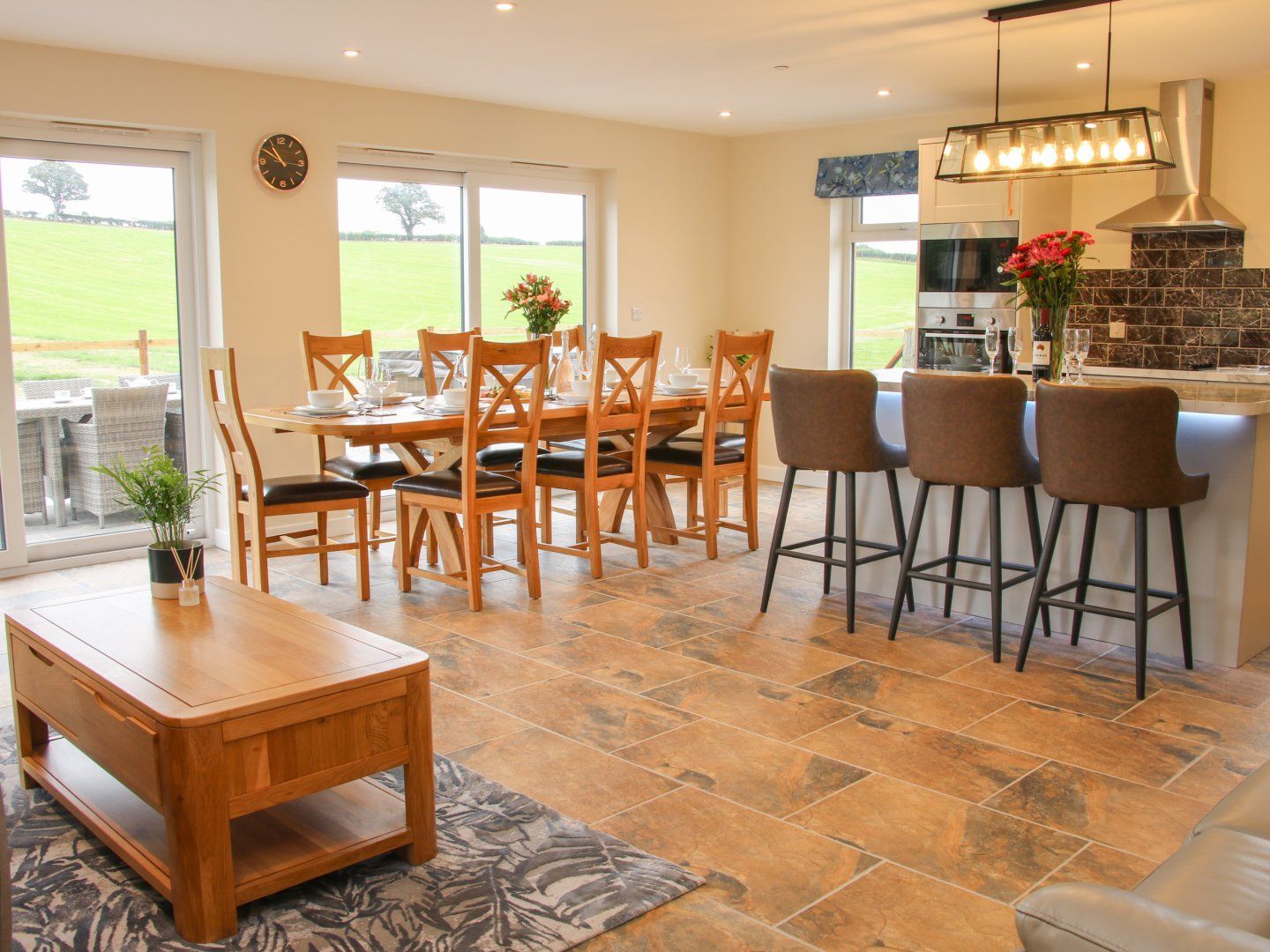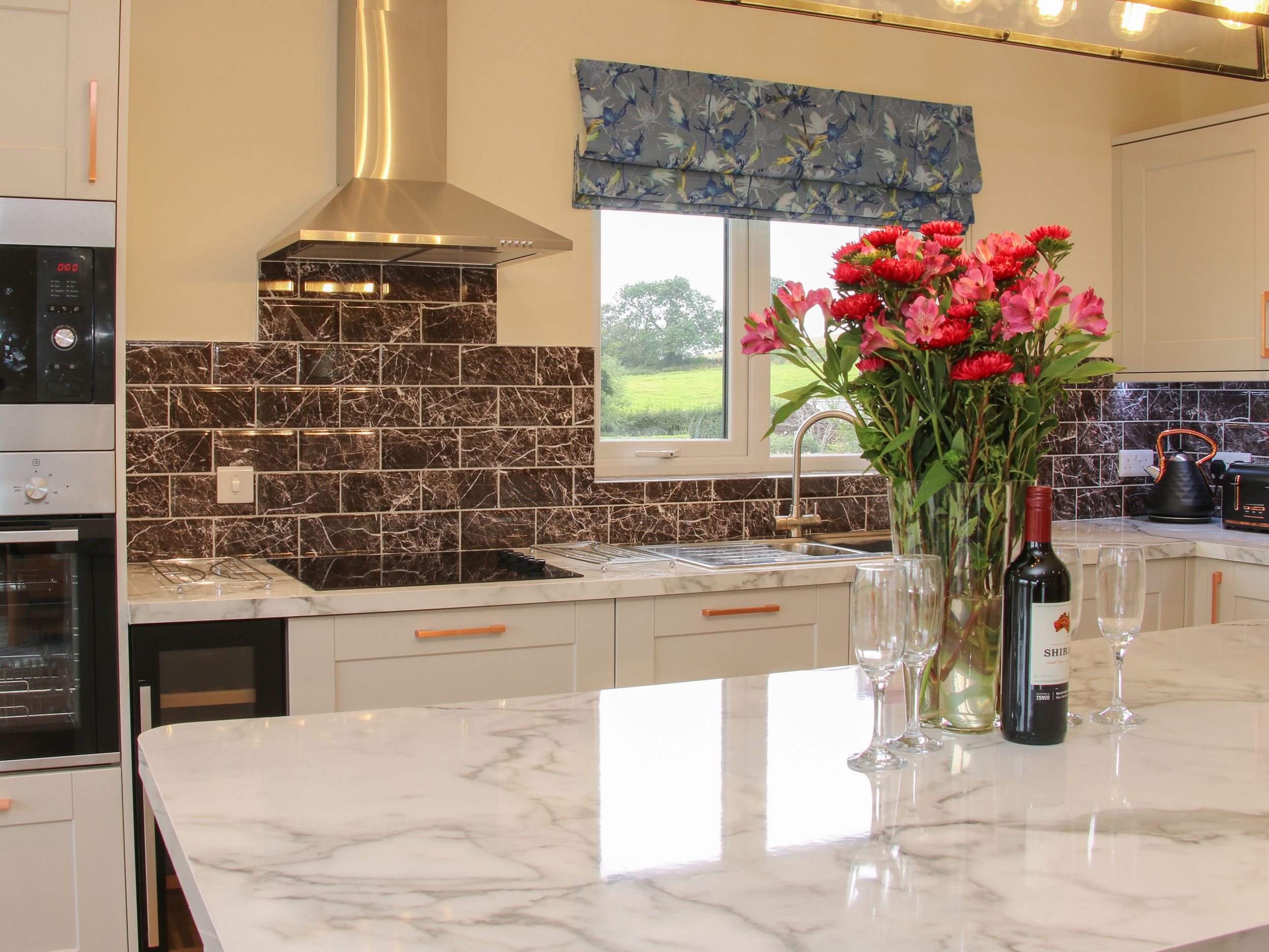 Holiday home Holly Lodge is a contemporary wooden lodge resting in Forden near Montgomery, Powys. Hosting four bedrooms, including a ground-floor king-size with TV and en-suite shower room, a ground-floor king-size, a king-size and a ground-floor twin, along with a bathroom and a ground-floor shower room, this property can sleep up to eight guests. There is also an open-plan living space with kitchen, dining area and sitting area and a first-floor sitting room with woodburning stove. Outside there is an enclosed garden with lawn, patio, furniture, barbeque and hot tub and ample off-road parking. Add a touch of luxury to your next group celebration with a stay at Holly Lodge.The charging of electric cars is not permissible at the property