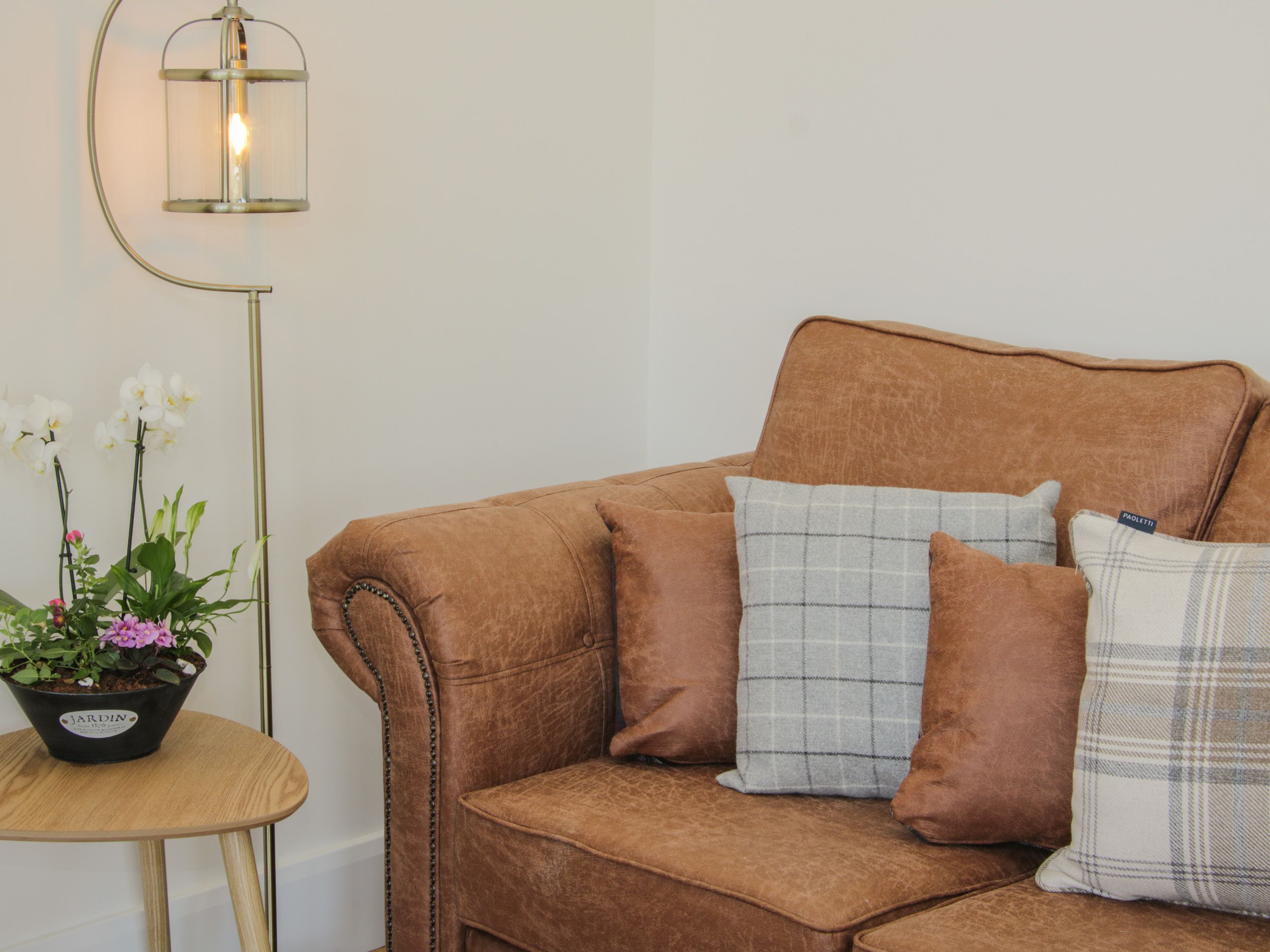 All ground-floor. Two bedrooms: 1 x super-king-size with TV, 1 x twin (zip/link) with TV and en-suite shower room with walk-in rainfall shower, basin and WC. Bathroom with roll top bath, basin, heated towel rail and WC. Open-plan living/kitchen/dining area with woodburning stove. Utility