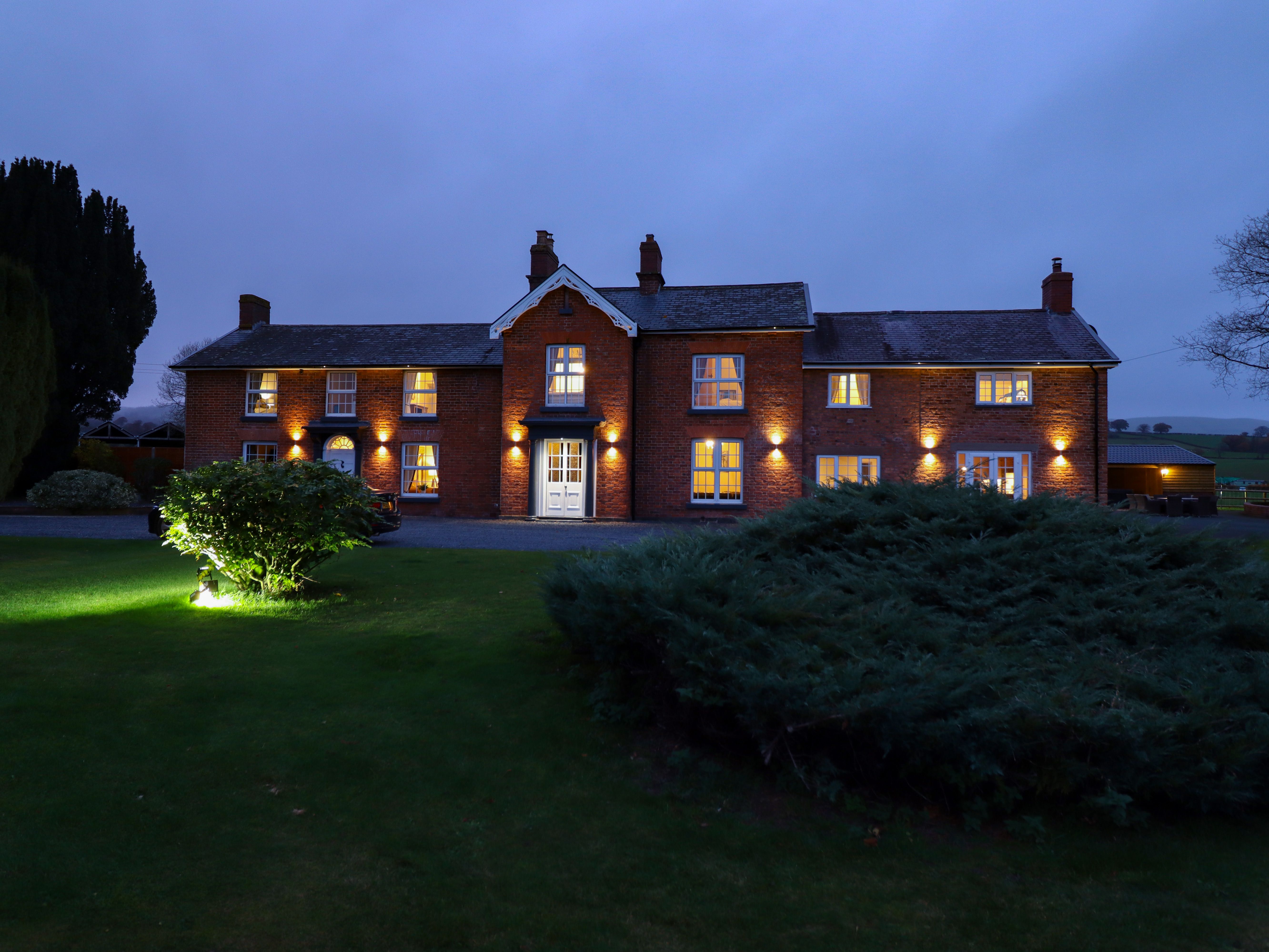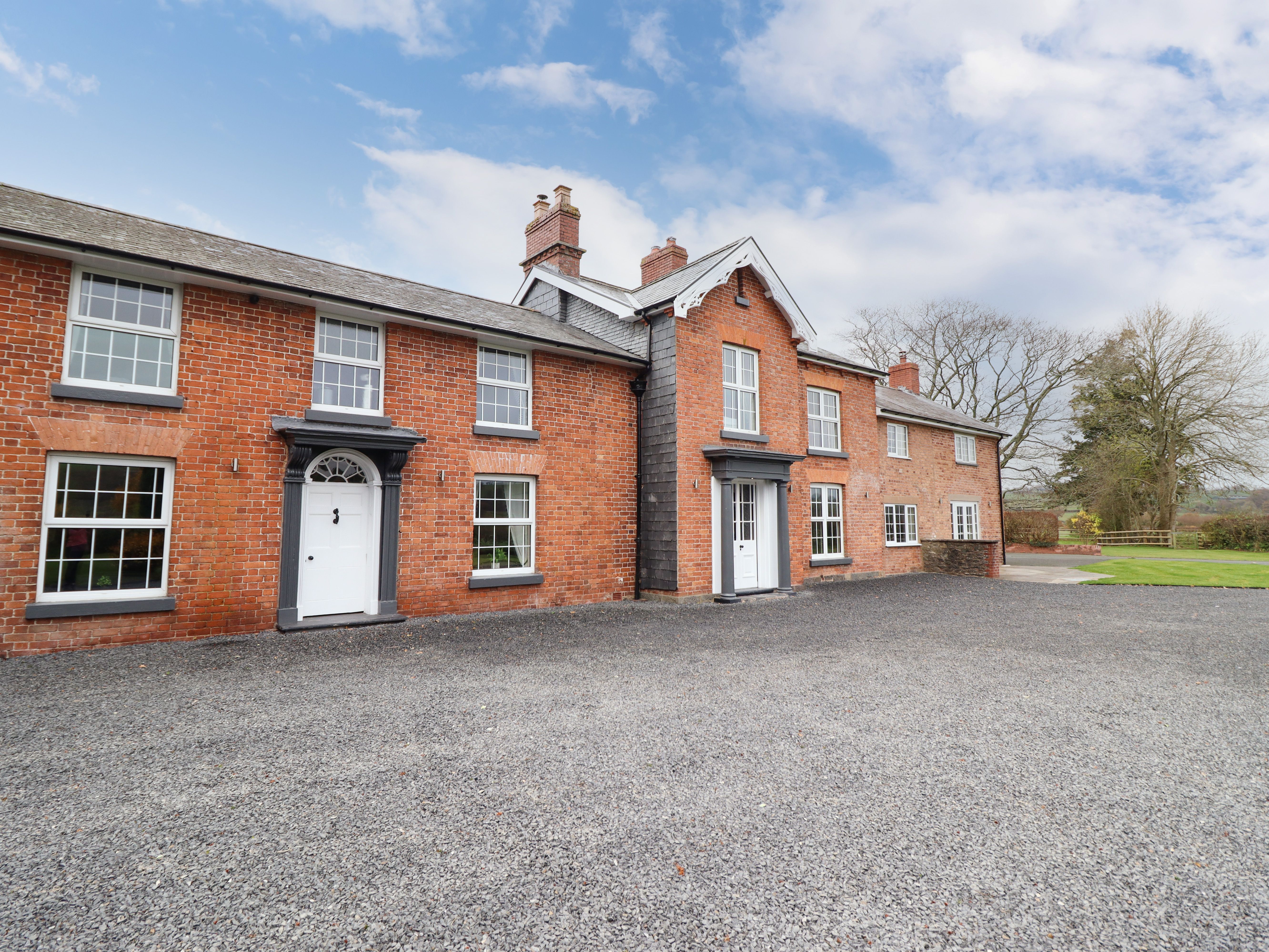 Holiday home Bodaioch Hall is a phenomenal house nestled in Trefeglwys near Caersws. Hosting 10 bedrooms, including a ground-floor super king-size with a sofa bed and en-suite shower room, a lower-ground-floor king-size with two separate en-suites, a ground-floor double with en-suite wetroom, a king-size and a twin room that both have Jack and Jill access to a shower room, a super king-size with a sofa bed and en-suite shower room, two king-size rooms with en-suite bathrooms, a double with en-suite shower room and a twin room, along with a ground-floor cloakroom, this property can sleep up to 24 guests. There is also a kitchen/diner, a sitting room with woodburning stove, a sitting room with an electric fire, a snug and a cinema room. Outside there is ample off-road parking, an enclosed front garden with lawned and patio areas, a side yard that features an external building and a rear private garden with lawn. The external building contains a games room, two hot tubs and a utility room. For your next trip to Wales in a truly excellent setting, choose Bodaioch Hall.