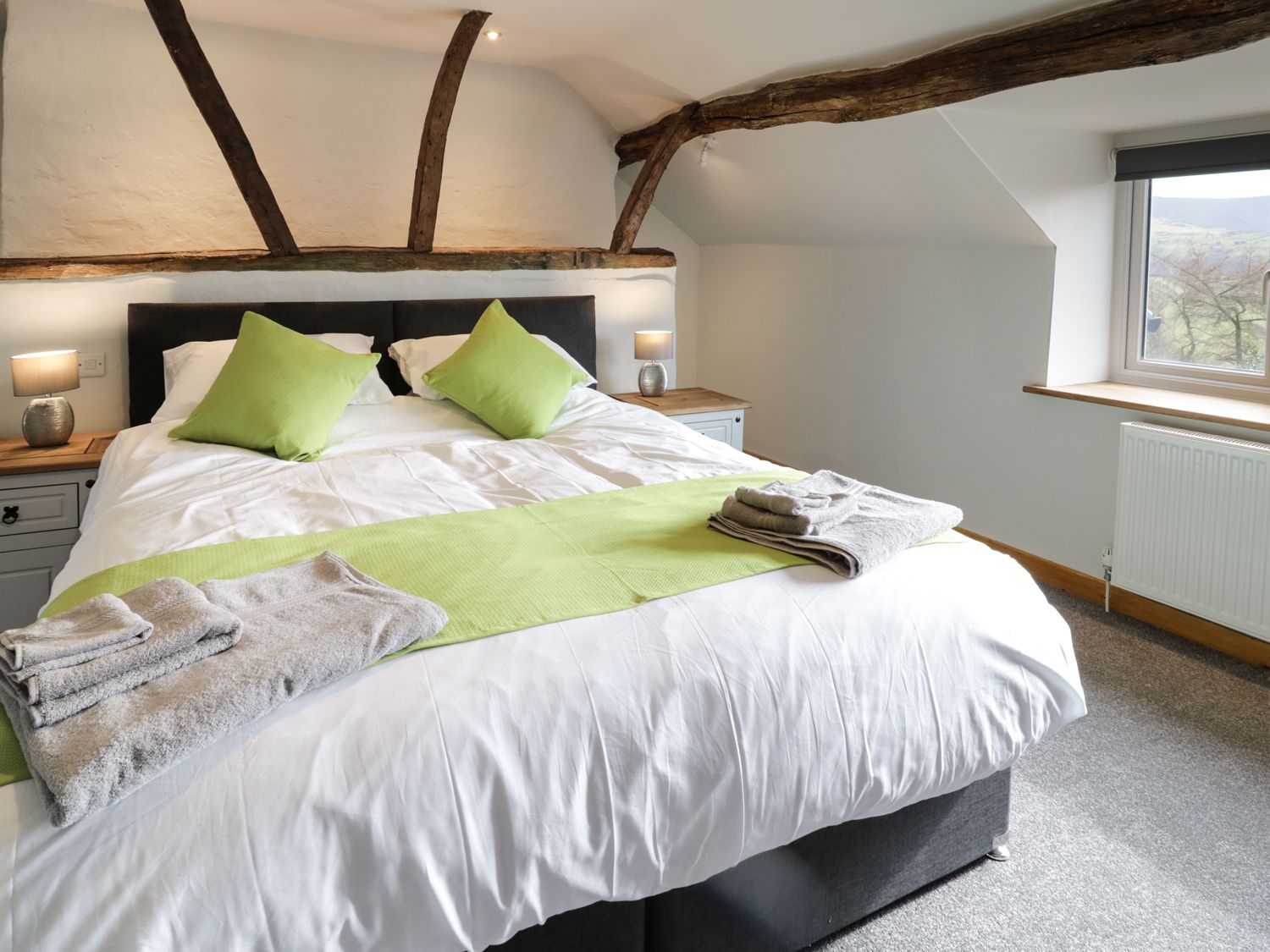 Two bedrooms: 1 x super king-size (zip/link, can be twin upon request), 1 x twin (zip/link, can be double upon request. Bathroom with separate shower, basin and WC, ground floor cloakroom with basin and WC. Kitchen/diner. Utility Sitting room with woodburning stove. Lockable storage barn for your use.