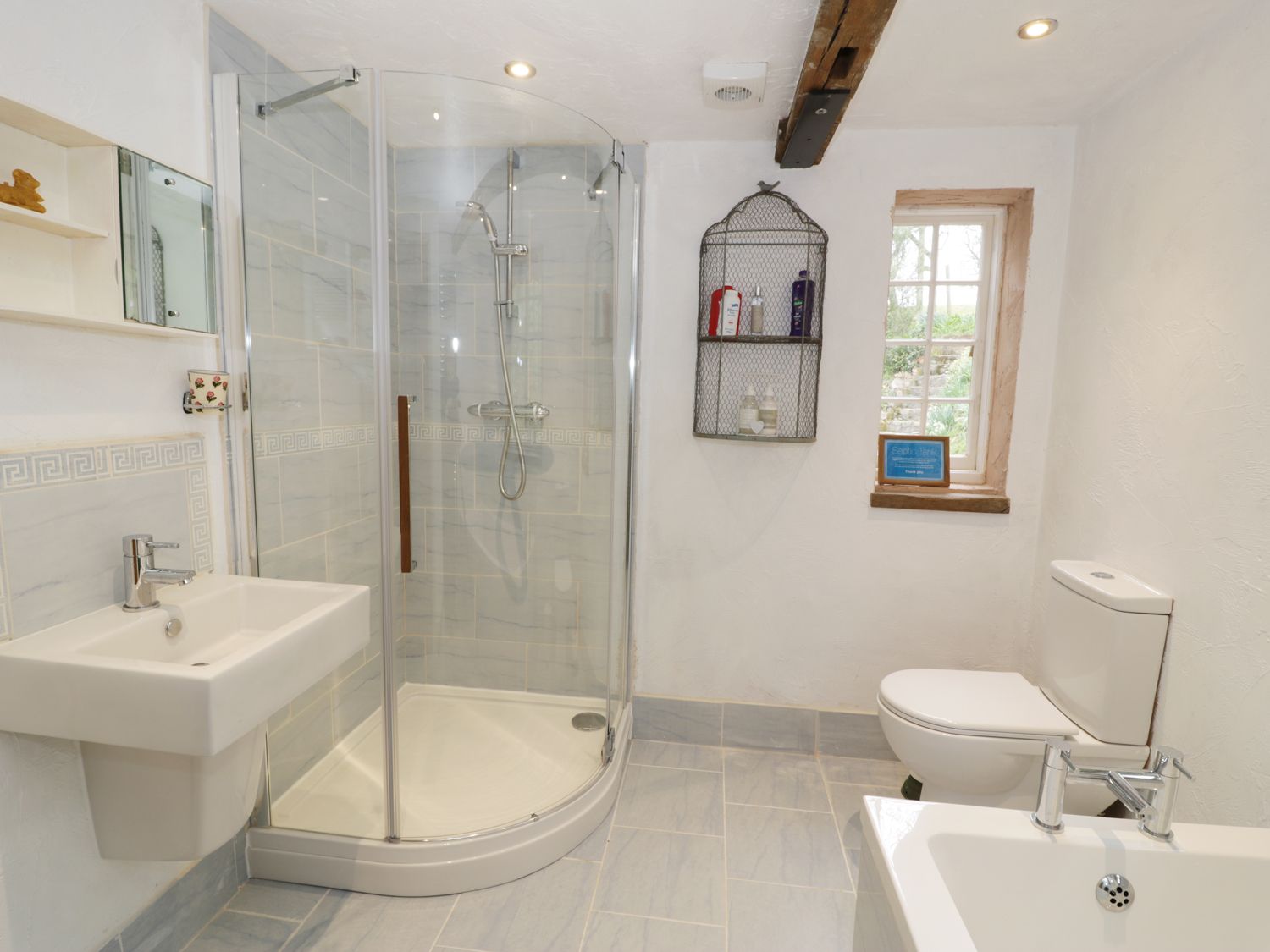 Accomodation Details All ground floor (but internal steps so slightly split over levels). Two bedrooms: 1 x double, 1 x twin. Bathroom with bath, seperate shower, basin and WC. Kitchen with dining area. Sitting room with woodburning stove.