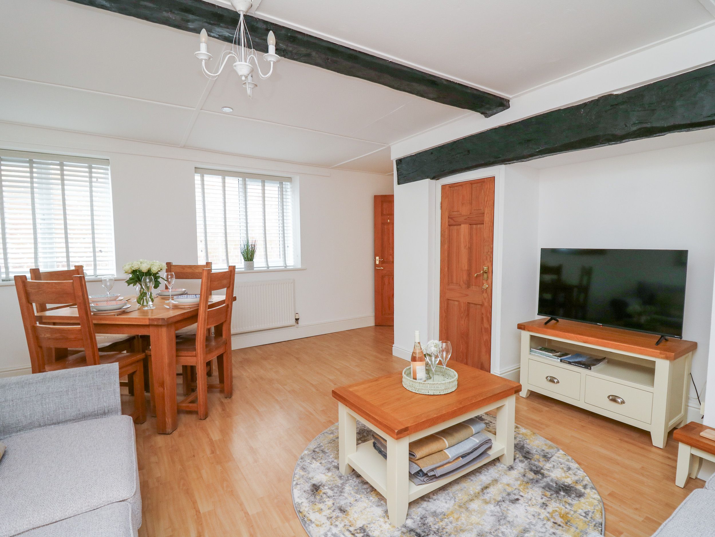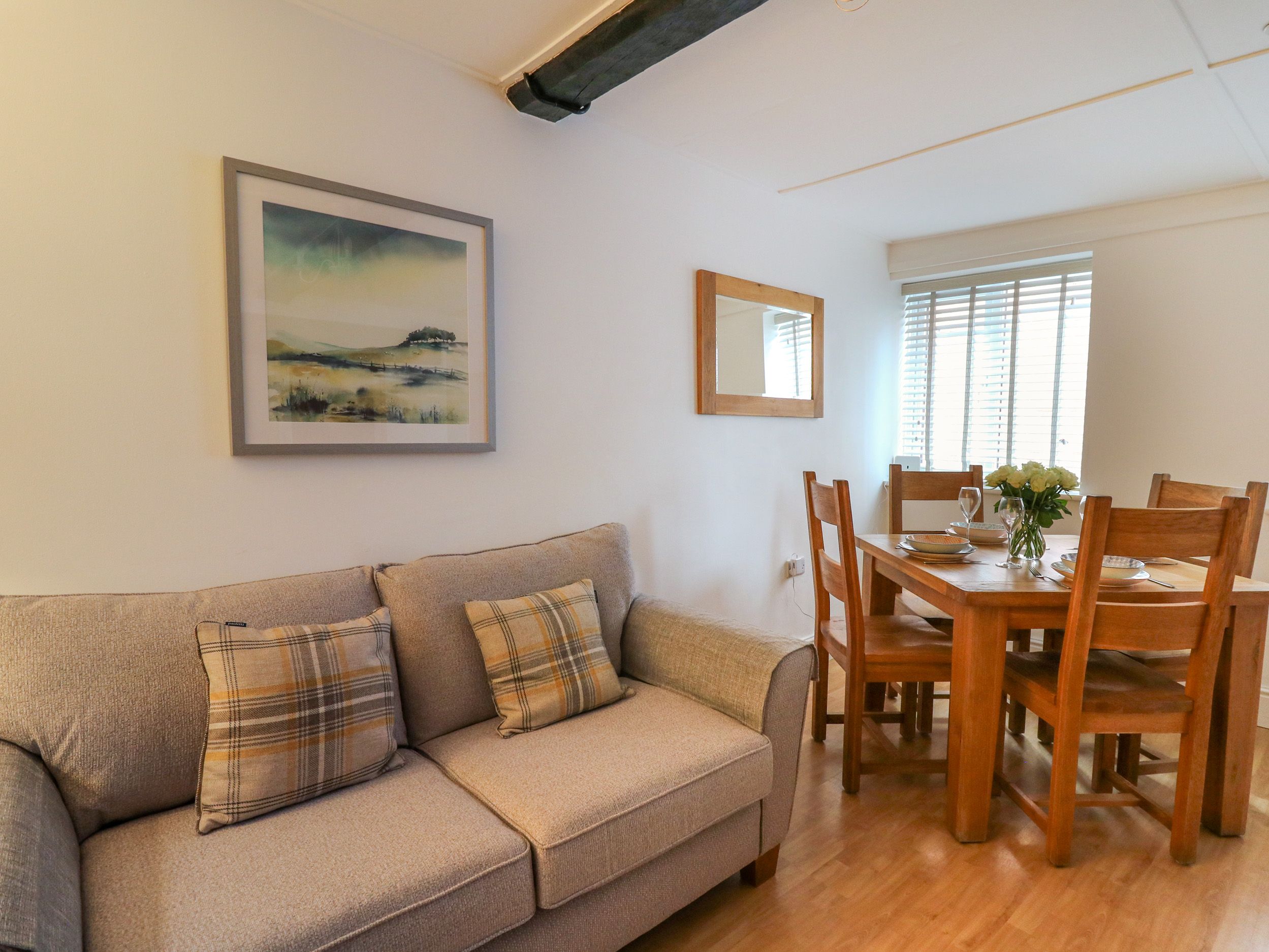 Accomodation Details Two bedrooms: 1 x king-size, 1 x double. Ground-floor bathroom with bath and shower over, basin, heated towel rail, and WC. Kitchen. Living/dining room