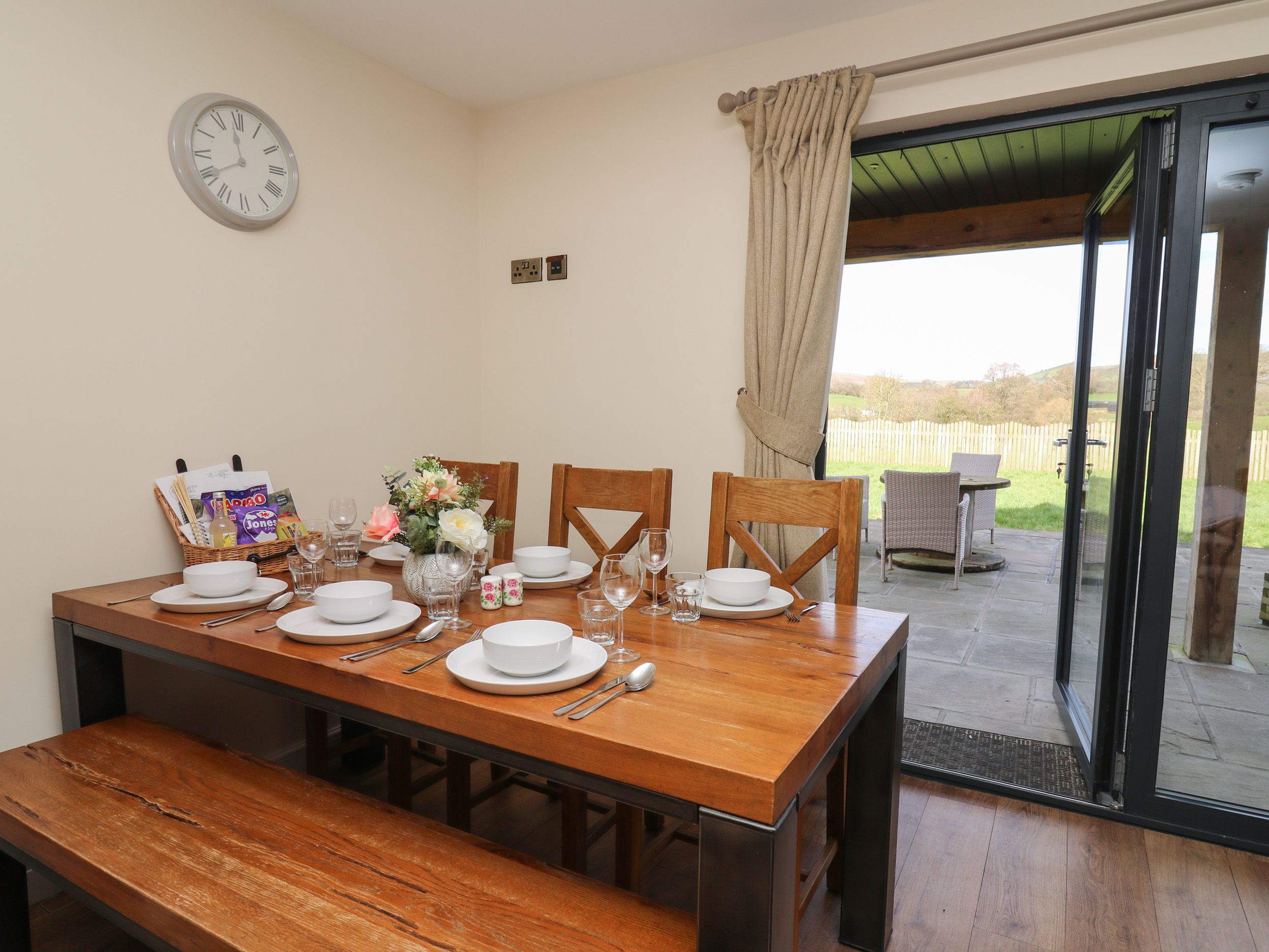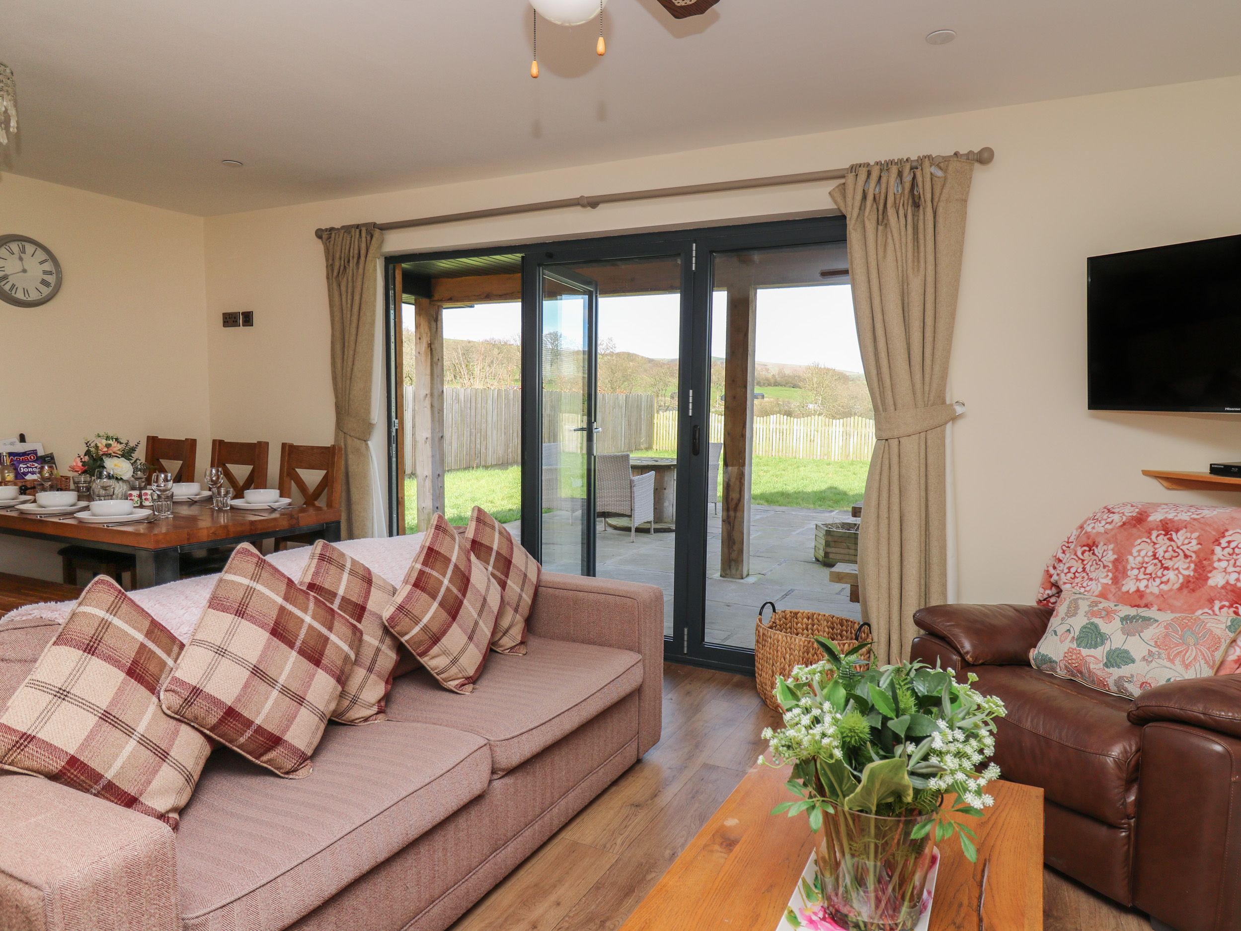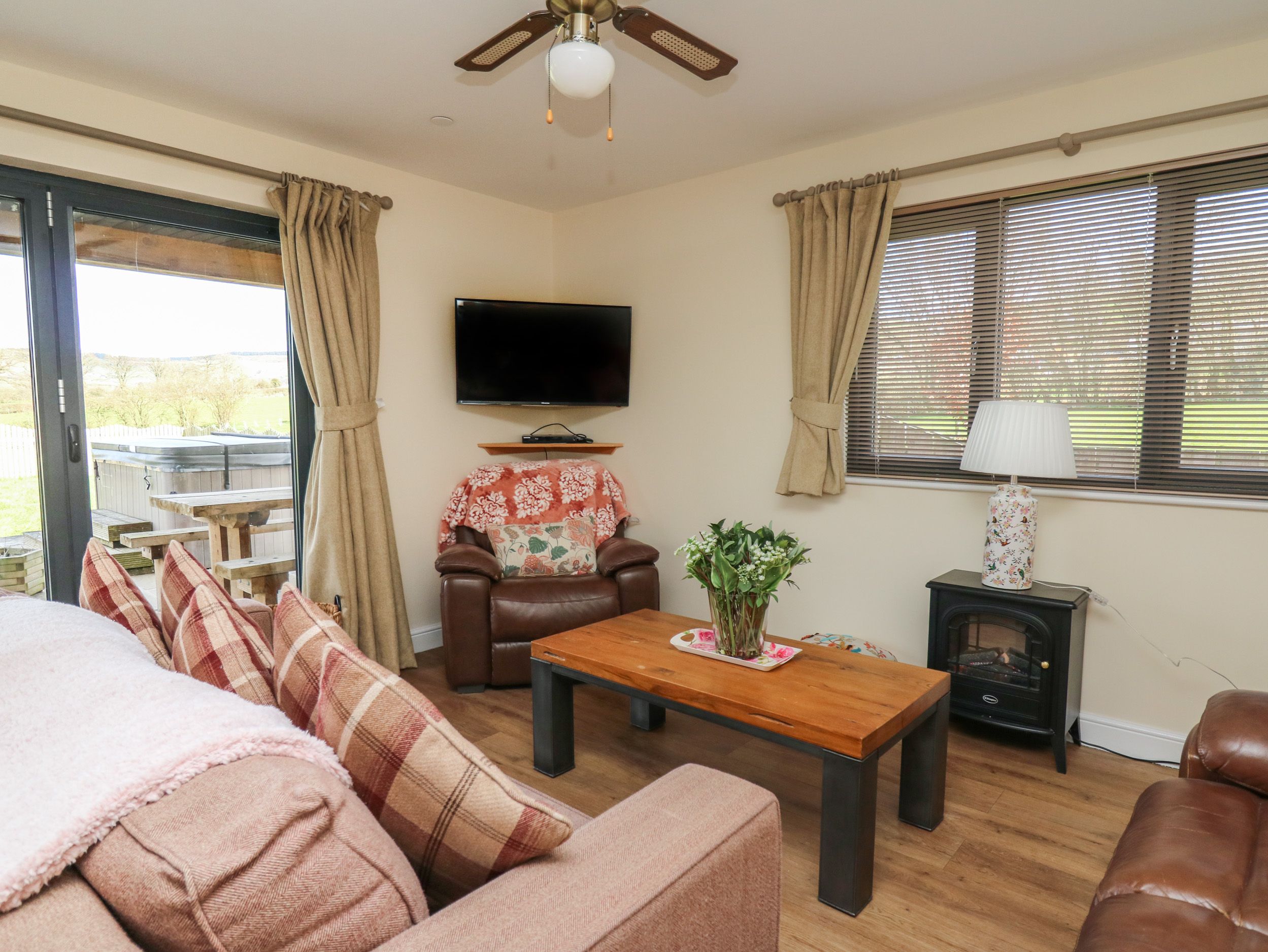 Amenities Biomass underfloor heating. Electric oven and hob, microwave, fridge, freezer, washing machine, dishwasher. TV with Freeview, DVD player, WiFi. Fuel and power inc. in rent. Bed linen and towels inc. in rent. Cot and highchair available, Off-road parking for 2 cars. Enclosed garden with lawn, patio and hot tub. Two well-behaved dogs welcome. Sorry, no smoking. Shop and pub 4 miles. Note: Slight step down from main patio to lawn or side access path. Note: Double sofa bed in lounge