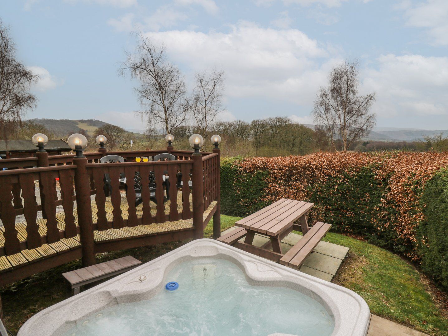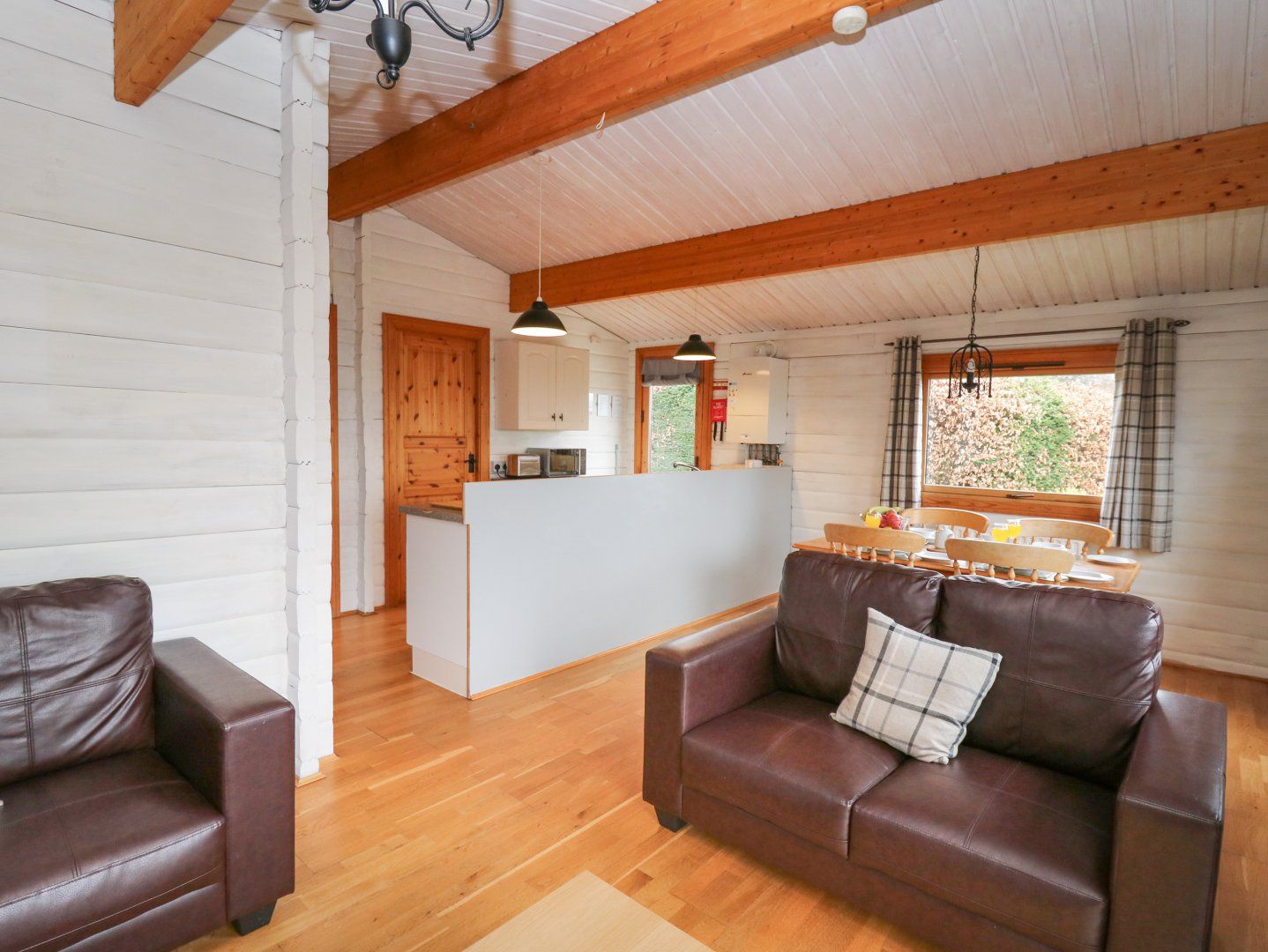 Amenities Gas central heating. Electric oven and gas hob, microwave, fridge. TV with Freeview, WiFi. Fuel and power inc. in rent. Bed linen and towels inc. in rent. Off-road parking for 1 car. Decked veranda with seating and hot tub. Two well-behaved pets welcome. Sorry, no smoking. Shop and pub 2.5 miles. Note: There are steps up to the lodge. Please note: There is an 11 PM noise curfew at this property. Please note: Grocery shopping deliveries from local supermarkets can be delivered to reception.