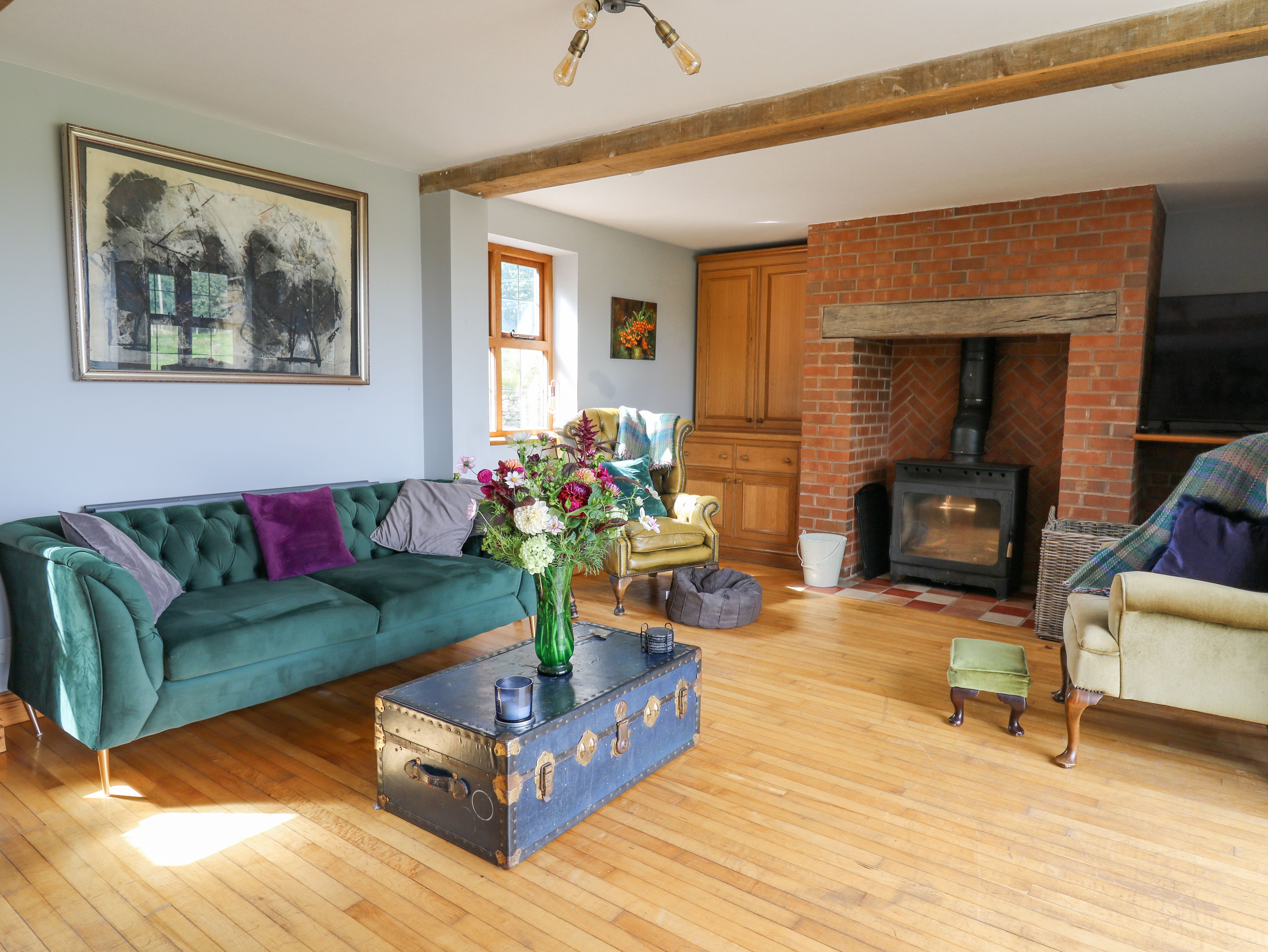 Over three floors. Five bedrooms: 1 x super-king-size (zip/link, can be twins on request) with en-suite shower, basin and WC, 1 x super-king-size, 1 x double with TV, 1 x second-floor double with TV, 1 x ground-floor double. Bathroom with bath, walk-in shower, basin and WC. Bathroom with bath, basin and WC. Cloakroom with basin and WC. Kitchen/diner. Sitting room with woodburning stove. Private pond nearby for wild swimming, paddle boarding and raft building.