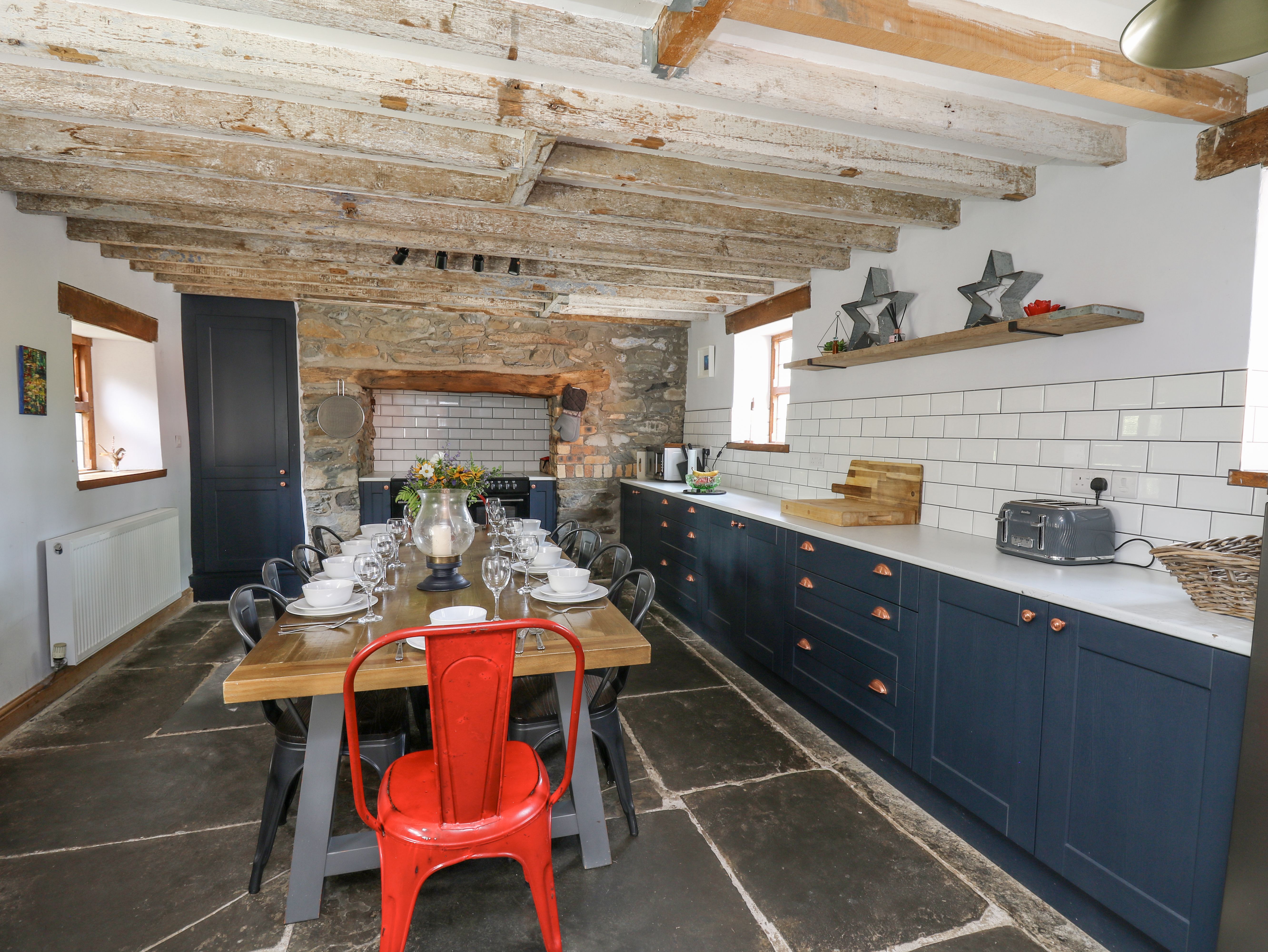 Nanthir has a kitchen/diner and a sitting room. Appliances include an electric range oven and hob, microwave, fridge/freezer, dishwasher, washer/dryer. The bedrooms include a super-king-size (zip/link), with en-suite shower, a super-king-size (zip/link), and three doubles, served by a bathroom and cloakroom. Outside there is garden patio with seating, hot tub and furniture, along with off-road parking for two cars. Within 11.1 miles or less there is a shop and pub and please note, one pet is welcome but sorry, no smoking. WiFi, fuel, power, bed linen and towels are all included in the price. Nanthir is a wonderful retreat, whatever time of year. Private pond nearby for wild swimming, paddle boarding and raft building.