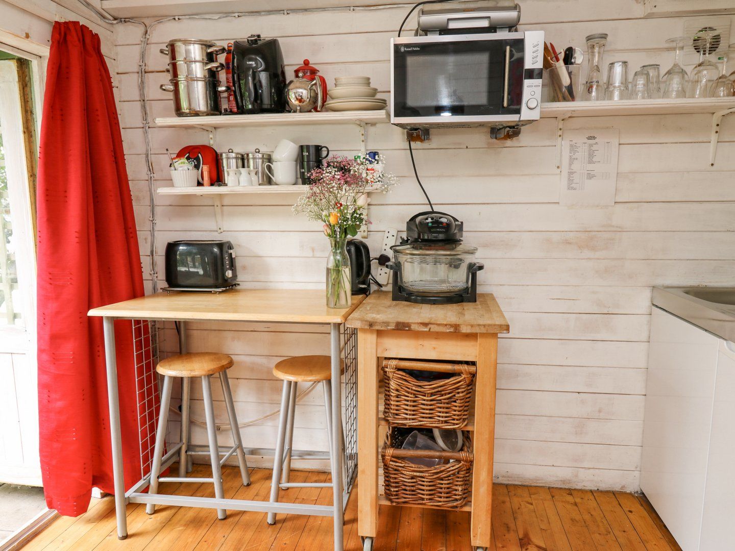 Amenities Central heating. Electric 2-ring hob, fridge (freezer box), air fryer, George foreman grill, microwave/grill. Smart TV, Bluetooth Speaker and WiFi. Fuel and power inc. in rent. Bed linen and towels inc. in rent. Off-road parking available. Patio with seating, fire pit, BBQ and soft tub. The property rests on a working farm. Two well behaved dogs allowed (additional charge applies). Sorry, no smoking. Shop 1.2 miles, pub 1.3 miles