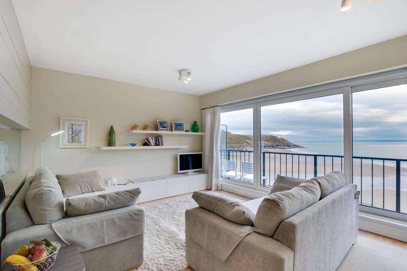 Be greeted by floor-to-ceiling panoramic views of Caswell Bay as you step through the door of this exceptional, luxury top floor Redcliffe apartment.