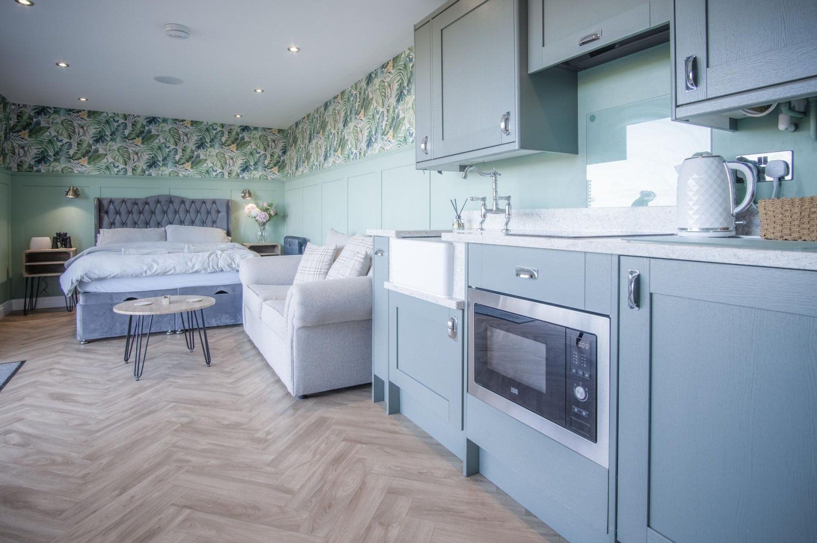 There's so much we love about this stylish cabin – the attention to detail here is fantastic. First of all we have to mention the gorgeous copper roll-top bath, but the real highlight is the hot tub on the deck with its fabulous salt marsh and sea views. Enjoy the vistas at sunset with a glass of fizz or do a spot of stargazing (the sky around these parts is rated as class four on the Bortle Dark-Sky Scale, don't you know). You can also enjoy the landscape from inside, thanks to the three-stage bi-folding doors that let the outdoors into this cosy studio space.