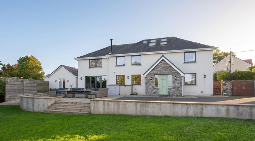 Large detached farmhouse sleeping up to 15 people in the rural Gower village of Llanrhidian, with far-reaching views across Penclawdd Estuary and interiors inspired by boutique hotels.