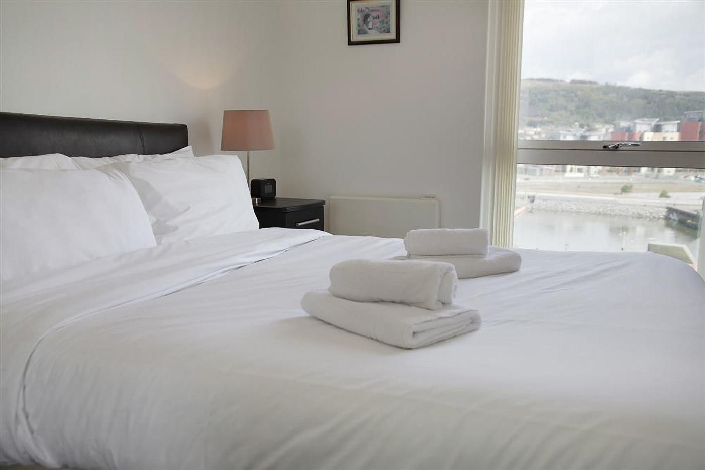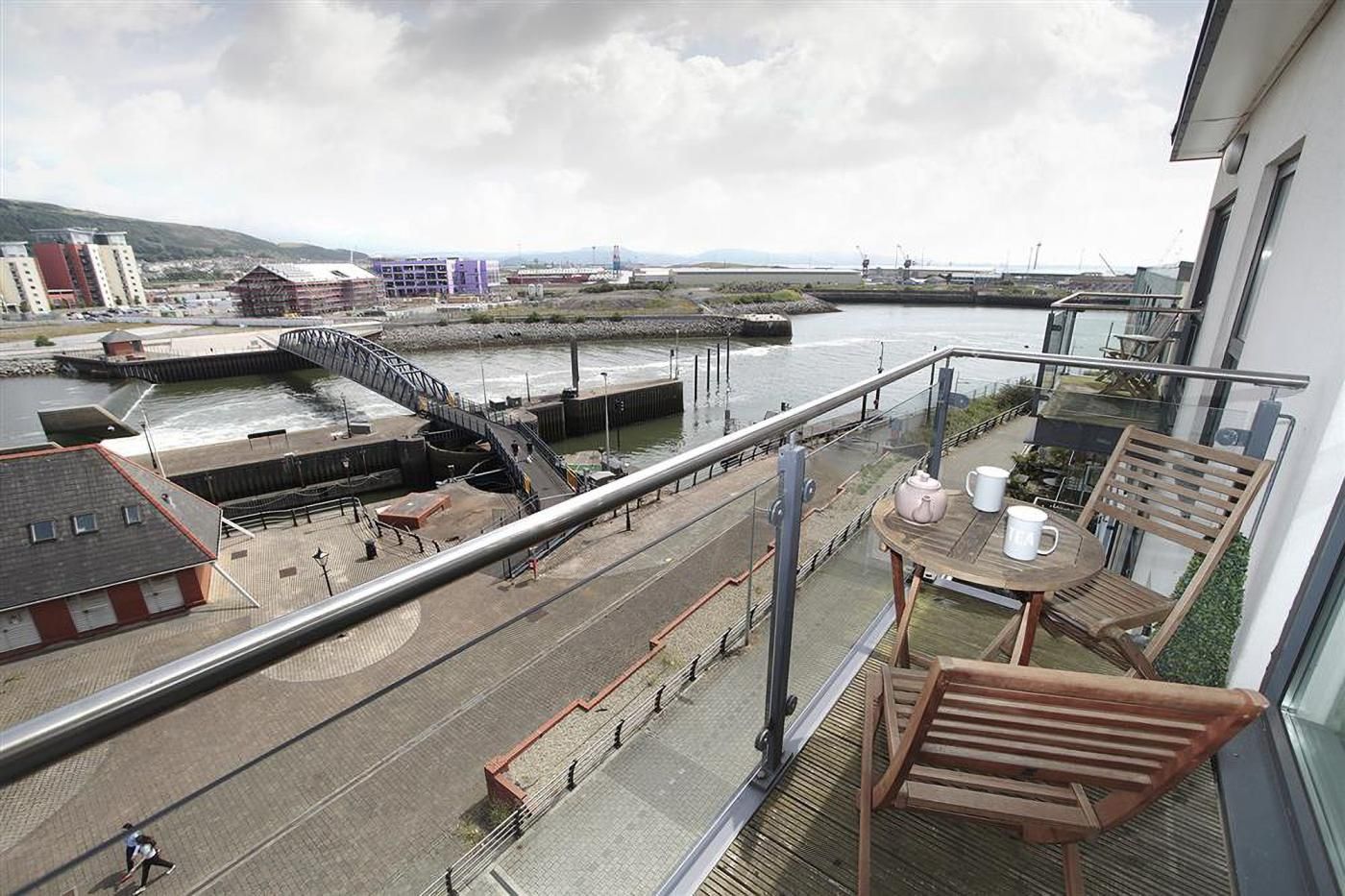 The balcony, lounge and bedroom offer views across The Marina gate towards the docks and SA1. This apartment is perfect for short breaks, city breaks or full-length holidays.