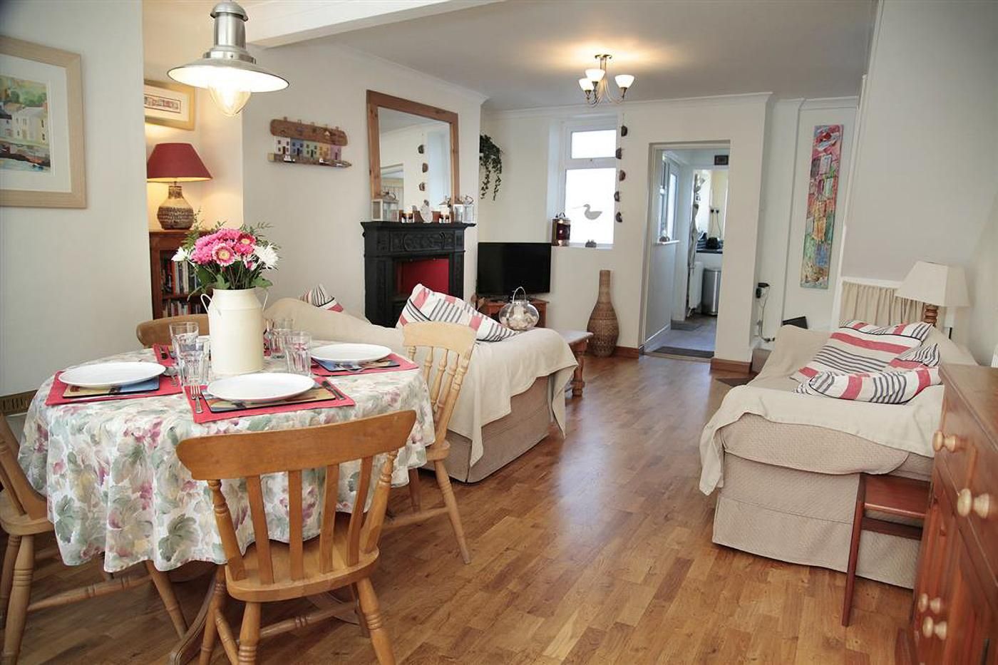 Reception/Dining Area: Table and chairs for 4, 2 x sofas, wood burner, TV/DVD/Video player and portable CD player.