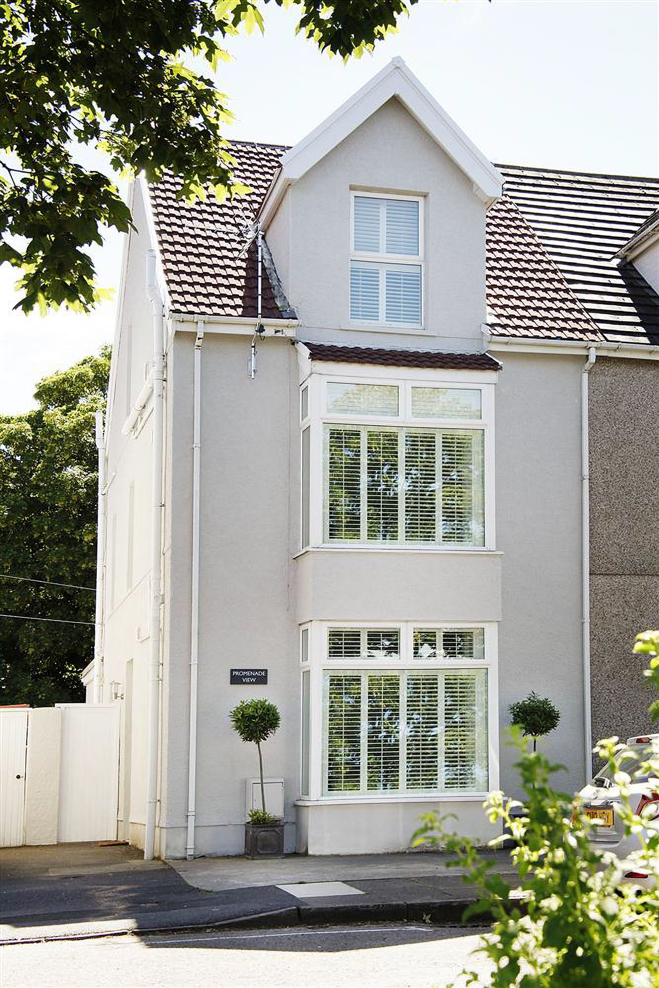 This stunning seaside townhouse offers spectacular views over Swansea Bay. This modern and elegantly furnished house benefits from 4 beautiful bedrooms (3 with en suite), off street parking and a pretty courtyard garden.