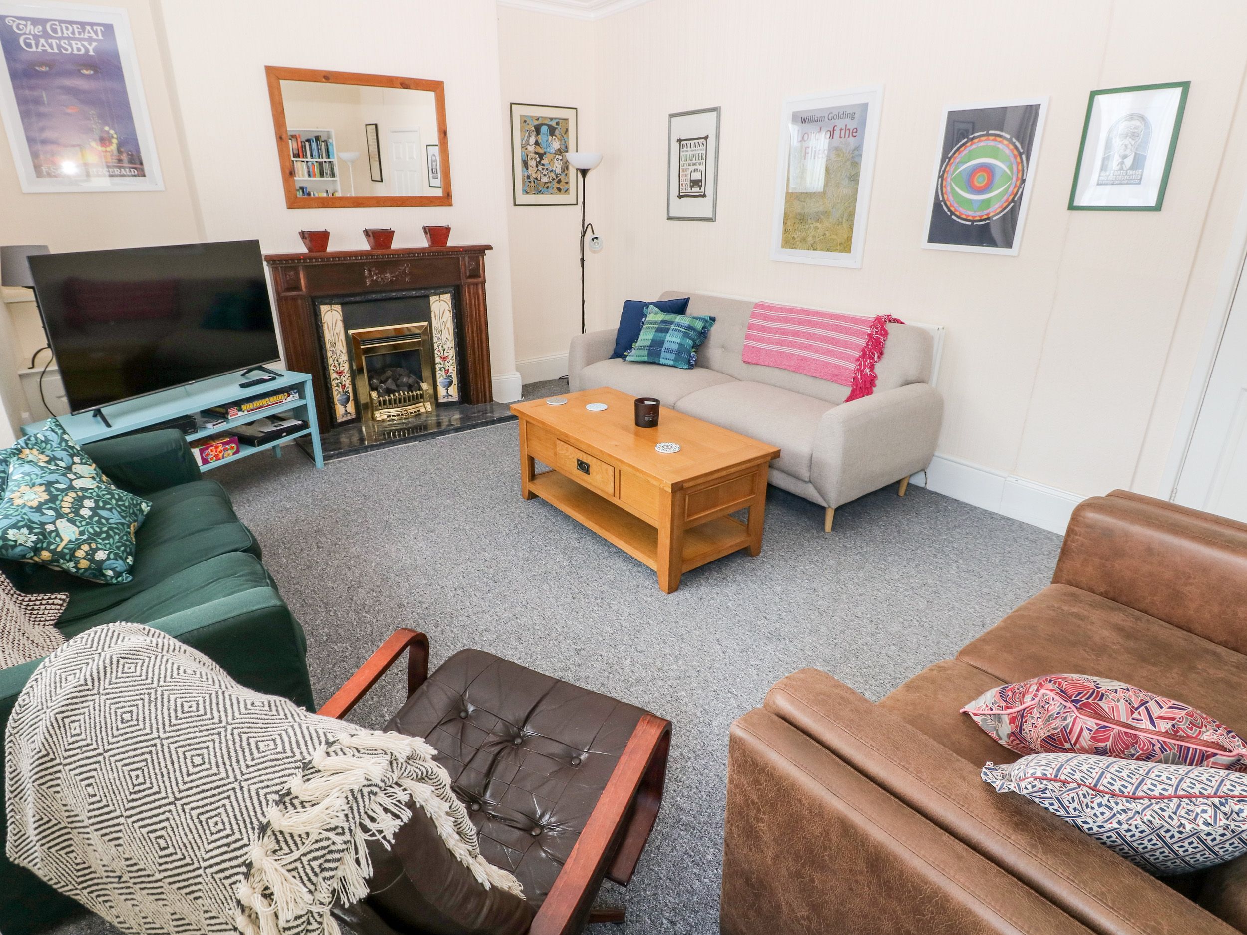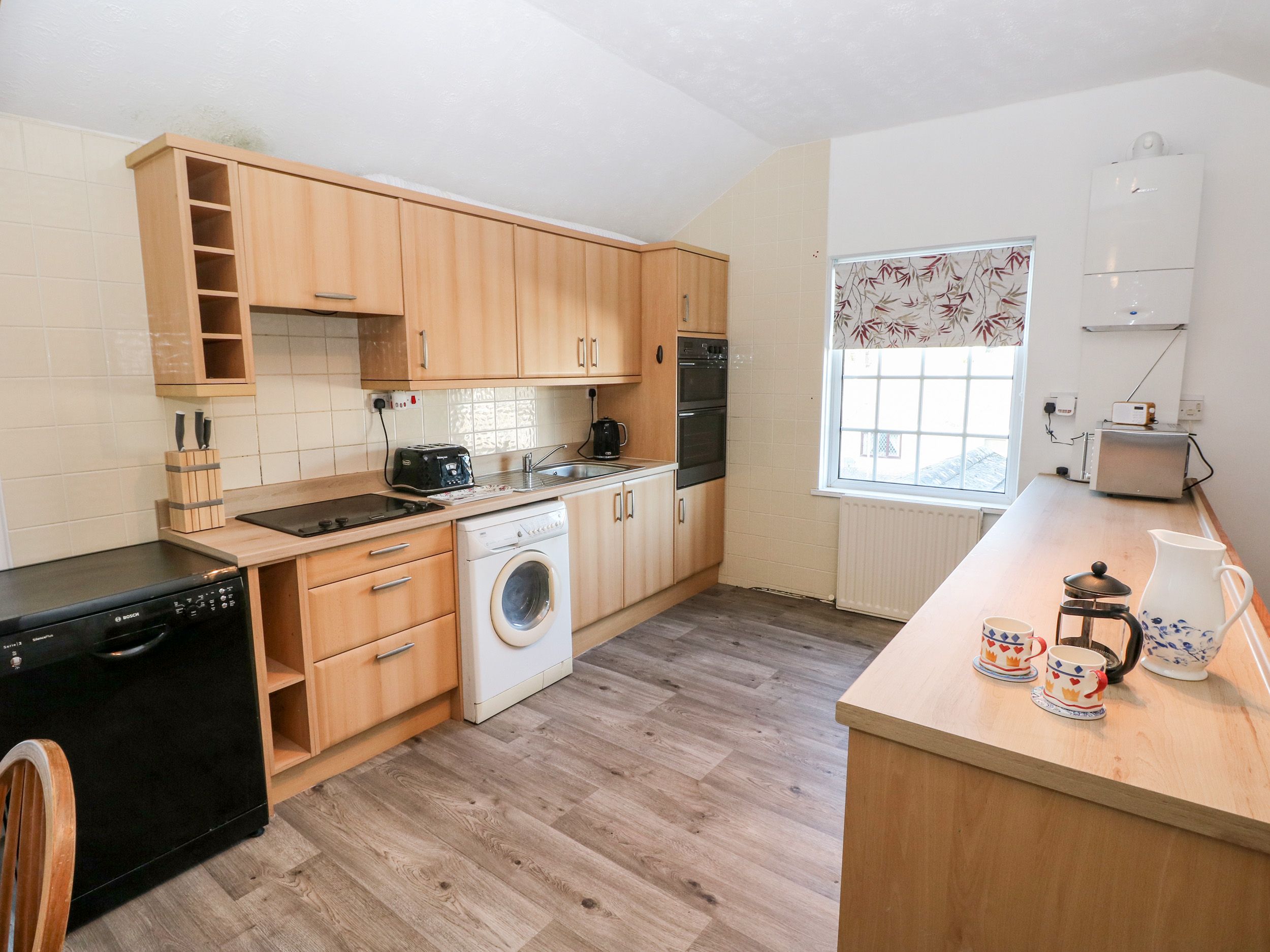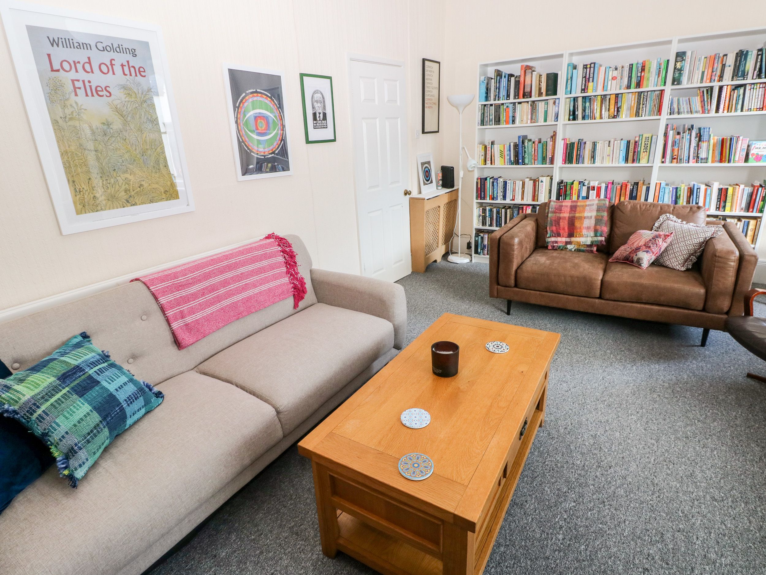 Holiday home The Bookshelf is a first-floor apartment with three bedrooms including a king-size and two twins, along with a bathroom, a kitchen/diner, and a sitting room with a gas fire. Appliances include an electric oven and hob, microwave, fridge/freezer, washer/dryer, and dishwasher. For entertainment there is a TV, WiFi, and a selection of books. Outside, there is allocated parking for one car and an enclosed garden. One well-behaved is dog welcome, with more accepted on request. Fuel, power, bed linen and towels are all included, and a highchair and travel cot are available on request. Sorry, no smoking. You can find a shop and pub within 0.1 mile and a beach within 0.8 miles.This property has a good housekeeping bond of GBP250. There's a small run of stone steps between the parking bay and property entrance, property comprises of two floors with three flights of stairs. This property has a 3 night minimum stay