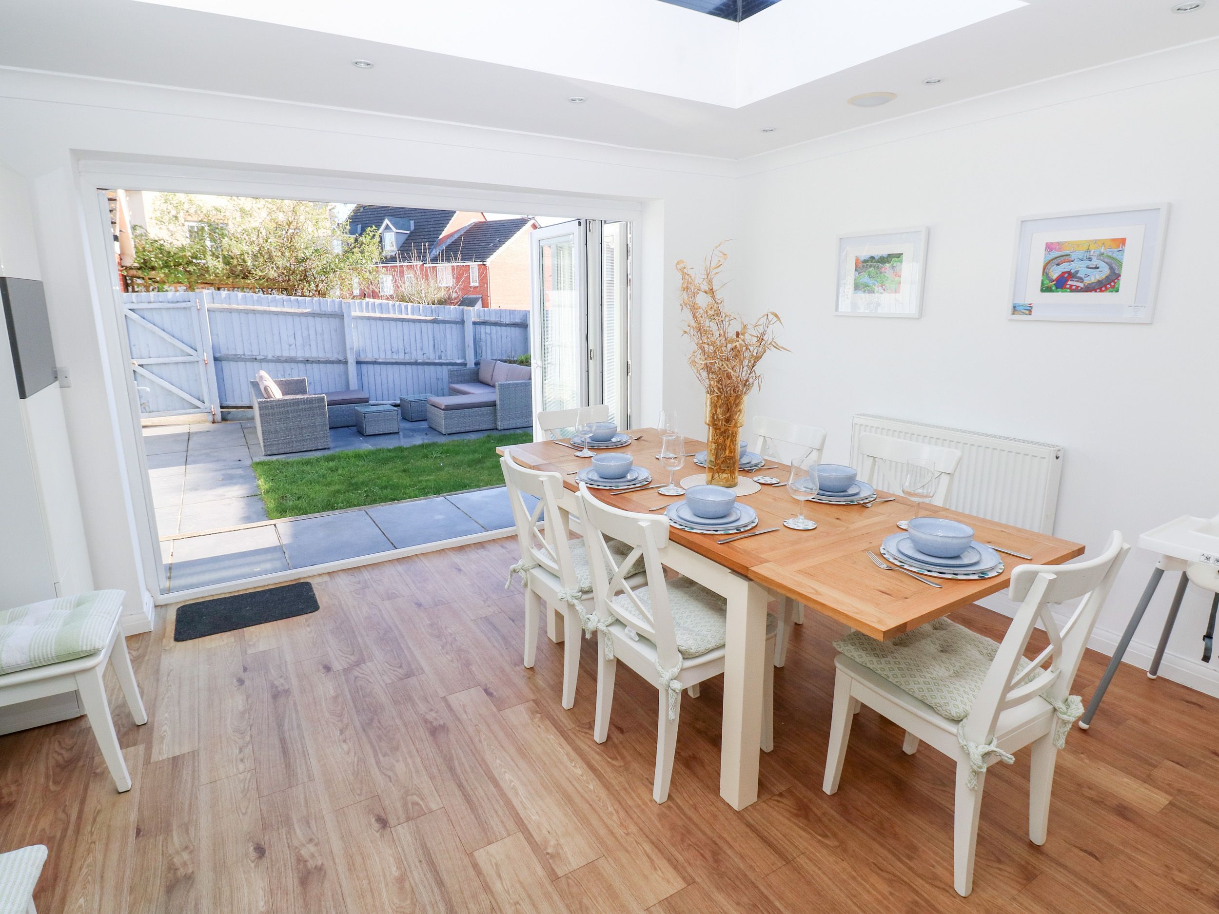 Amenities Gas central heating. Electric oven, gas hob, microwave, fridge/freezer, washing machine, dishwasher. Smart TV, WiFi. Fuel and power inc. in rent. Bed linen and towels inc. in rent. Travel cot and highchair available. Off-road parking for 1 car on enclosed driveway, permit provided for additional space. Enclosed rear garden with lawn, patio and furniture. Two well-behaved small dogs welcome. Sorry, no smoking. Shop 0.3 miles, pub 0.6 miles, beach 0.5 miles. Please note: The property sleeps 7 adults and 1 child as the top bunk is not suitable for adults.