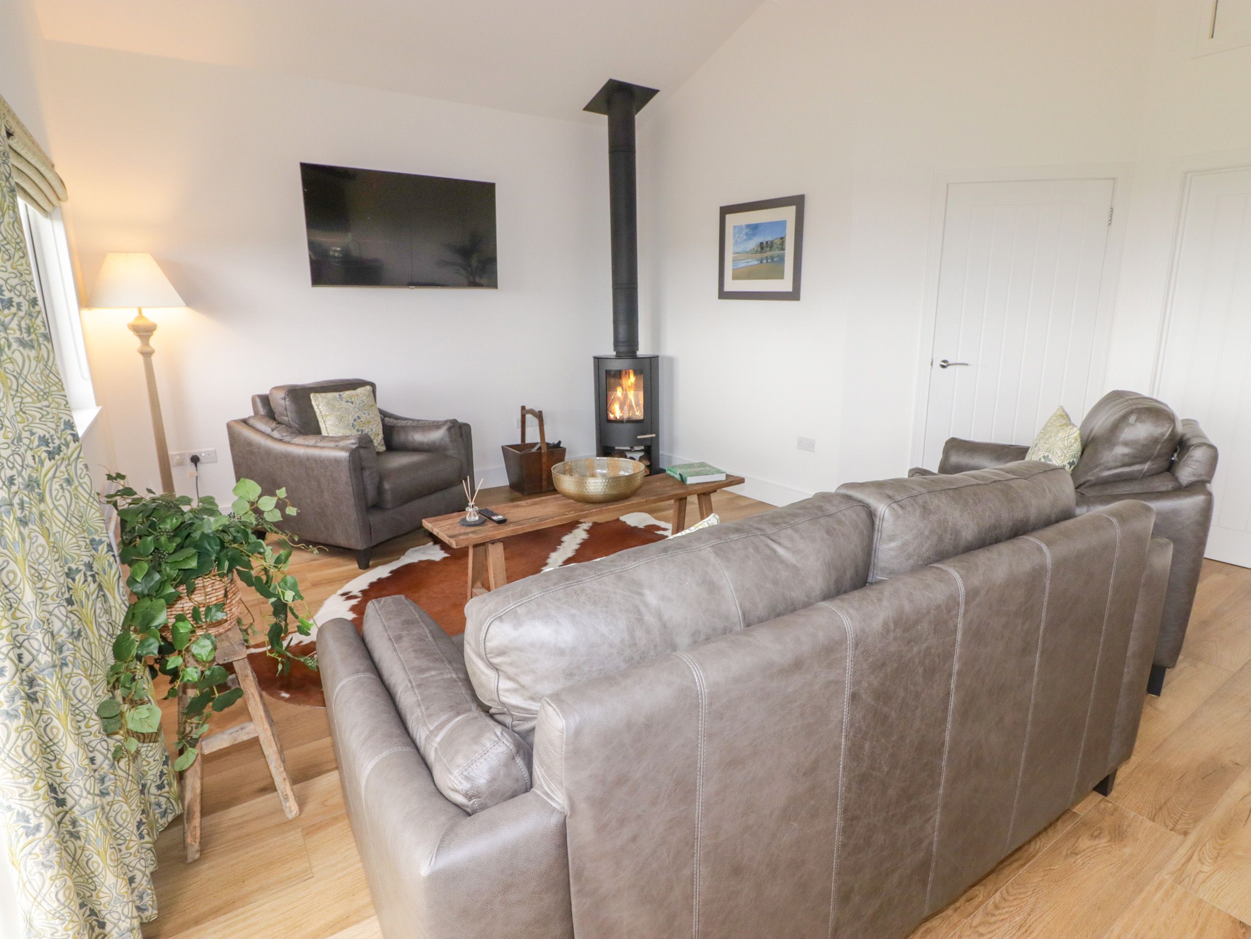 Accomodation Details Single-storey. Two double bedrooms. Shower room with walk-in shower, basin, heated towel rail, and WC. Open-plan living space with kitchen, dining area, and sitting area with woodburning stove