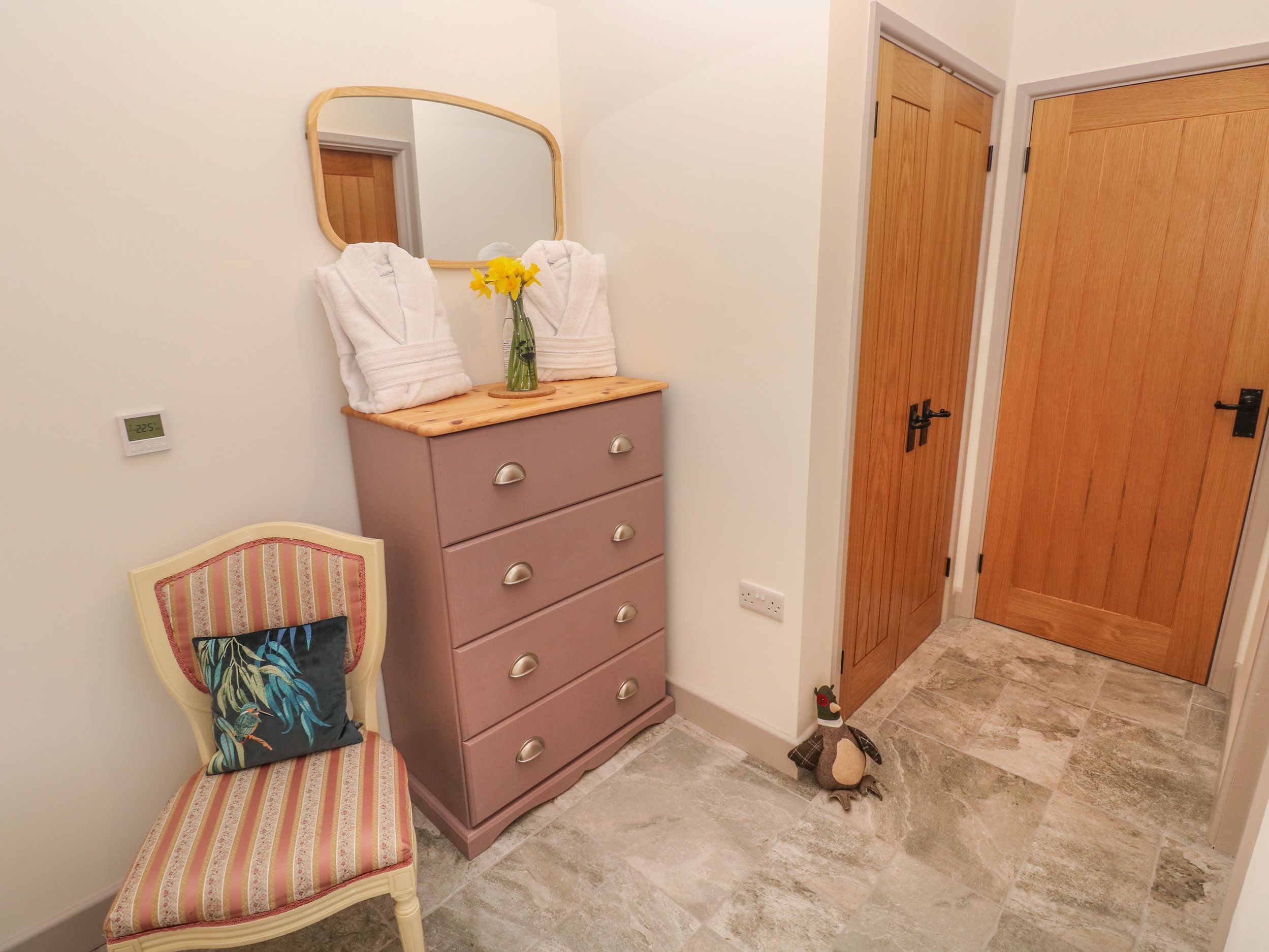 Accomodation Details Single-storey. One super-king-size bedroom with en-suite walk-in shower, basin, heated towel rail, and WC. Open-plan living space with kitchen, dining area and sitting area. Communal laundry room with washing machine. Communal dog washing area.