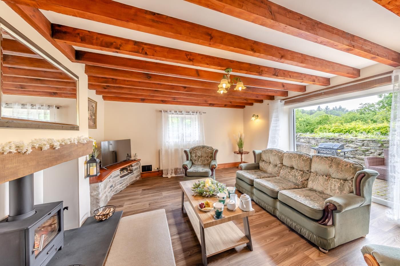 This spacious property in a stunning, peaceful setting has a large, enclosed garden with a lawn, patio and BBQ, perfect for friends or family and their four-legged companions.